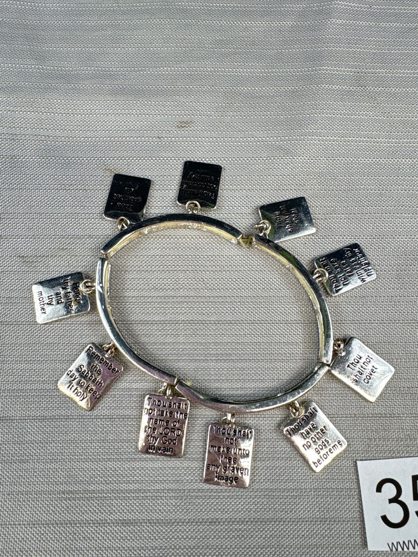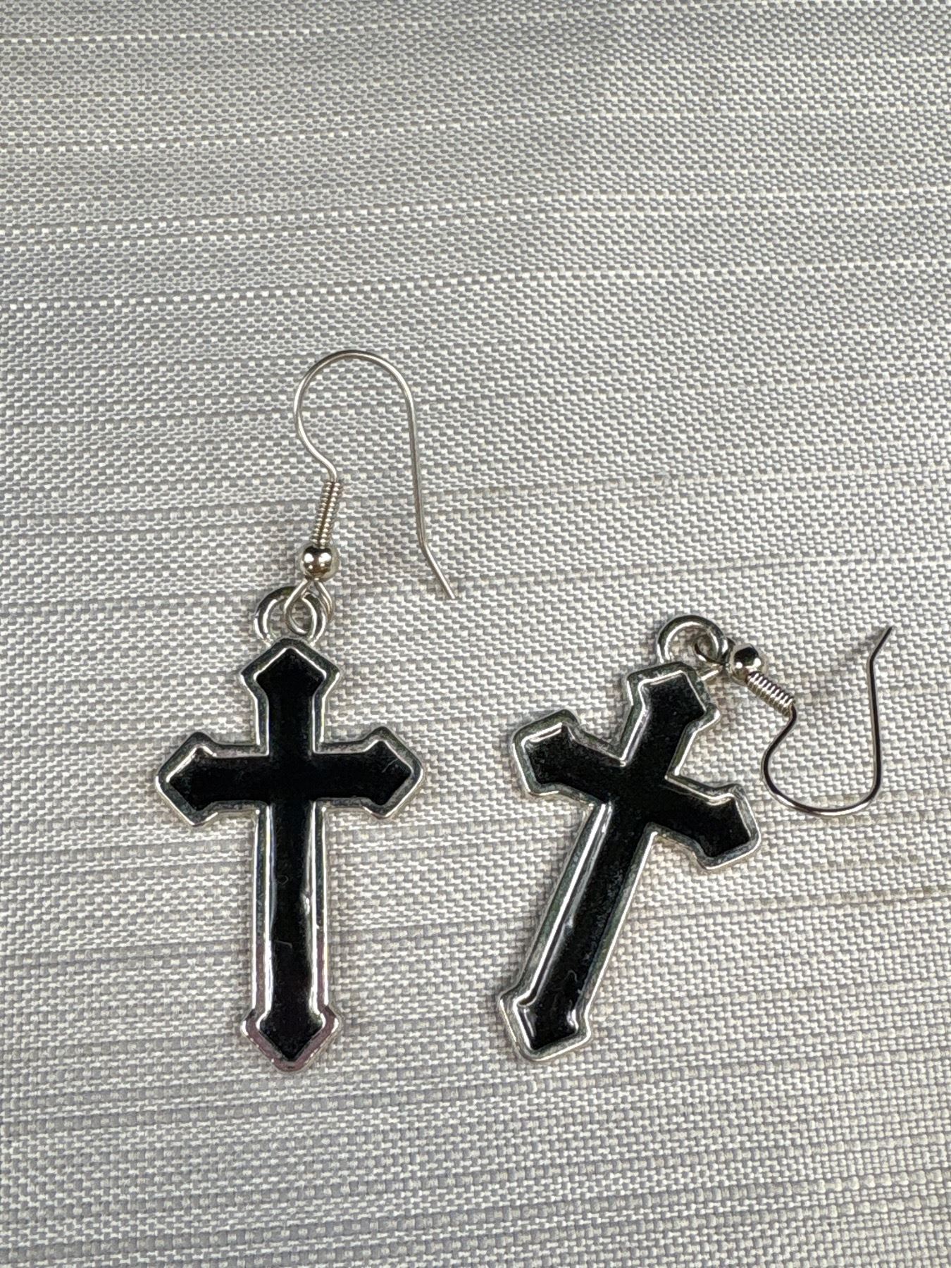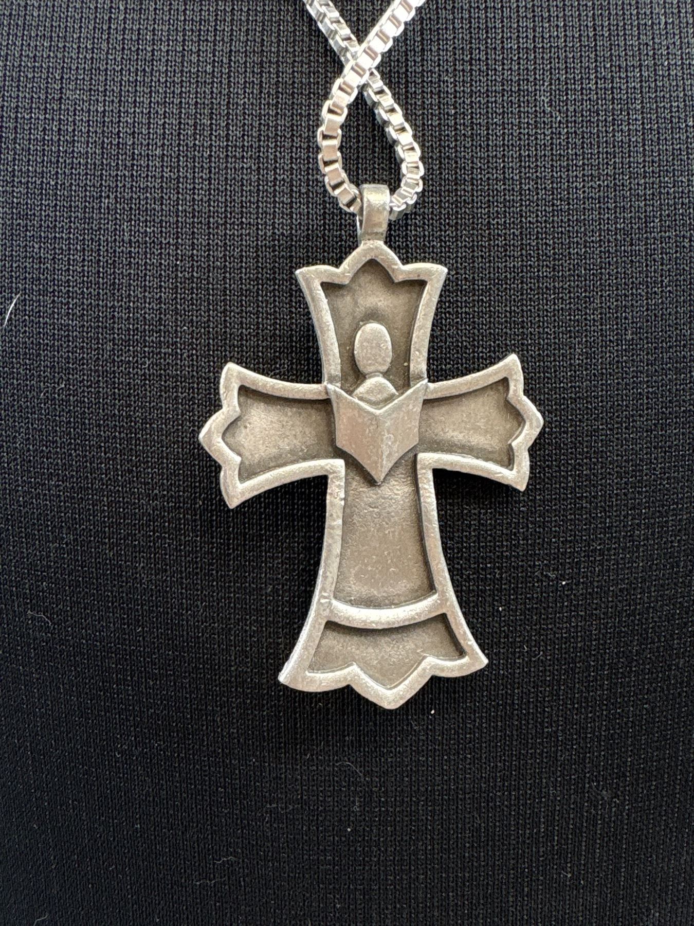Vintage Pewter Cross w/ Chain Necklace 10 Comm. Bracelet + Pair Cross Earrings