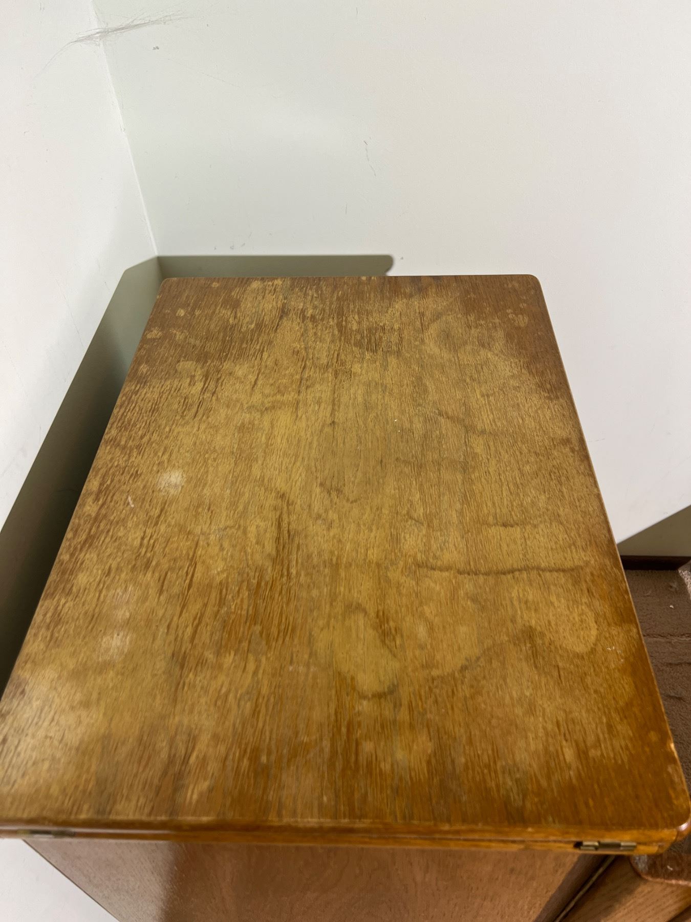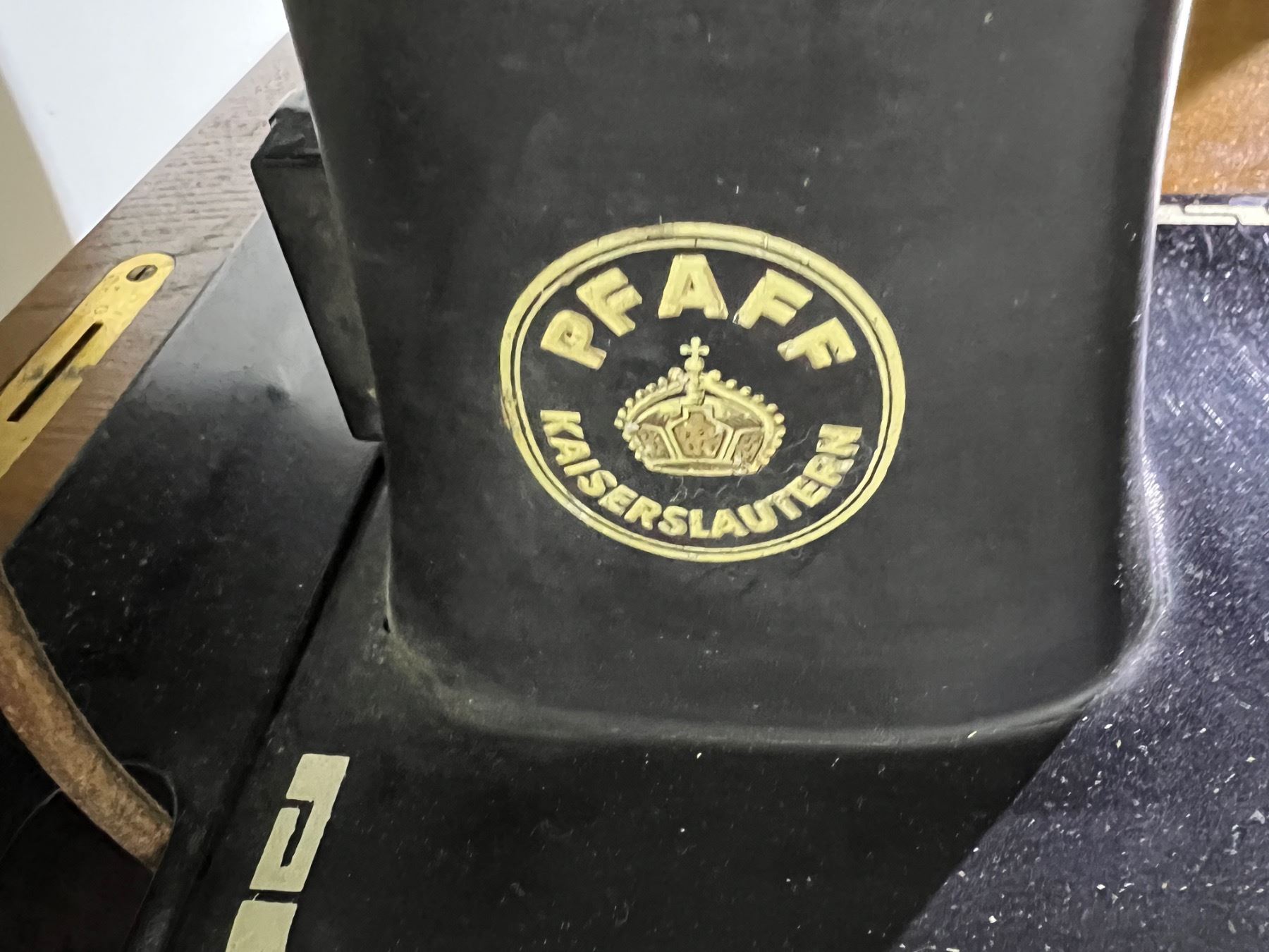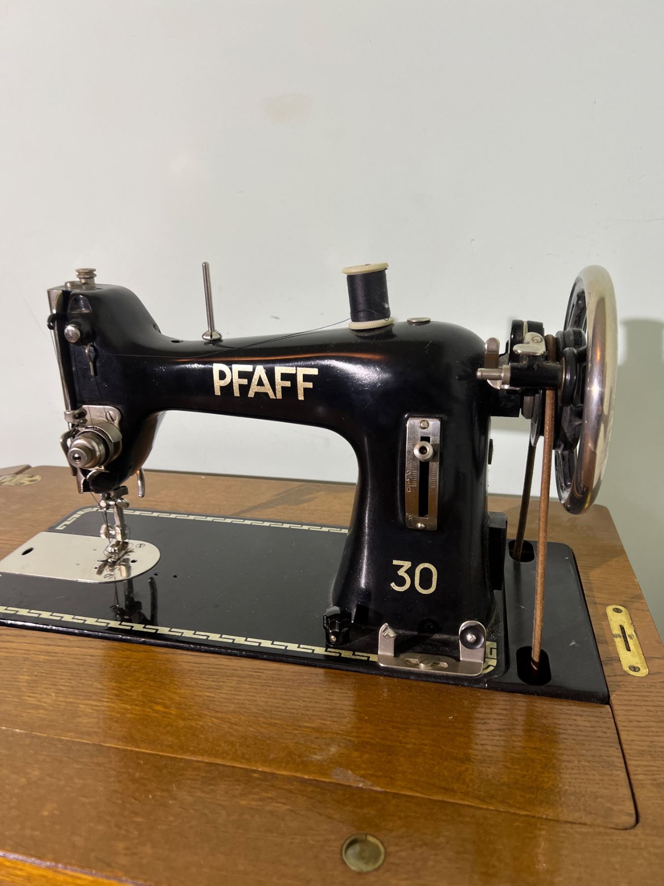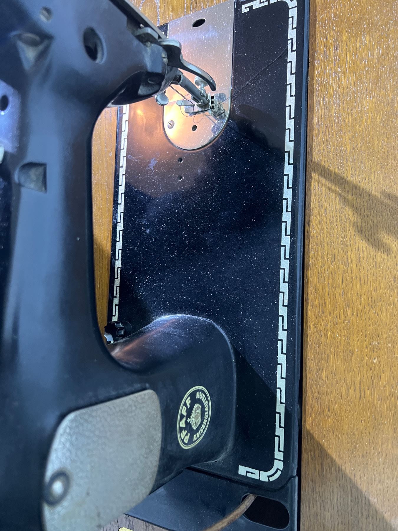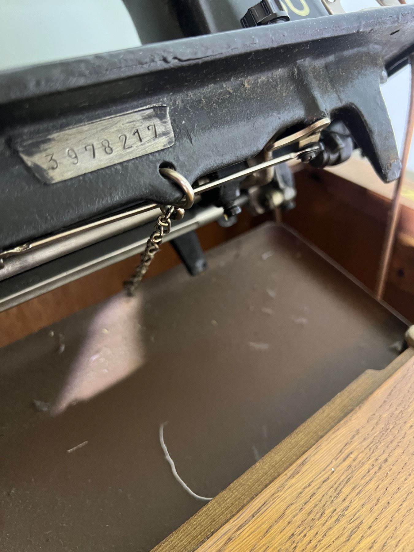 Serial No. 3978217, Includes some spare parts and accessories, The sewing table has some wear and markings on the wood, Fully extended; 46"L x 17"W x 31"H, Closed; 23"L