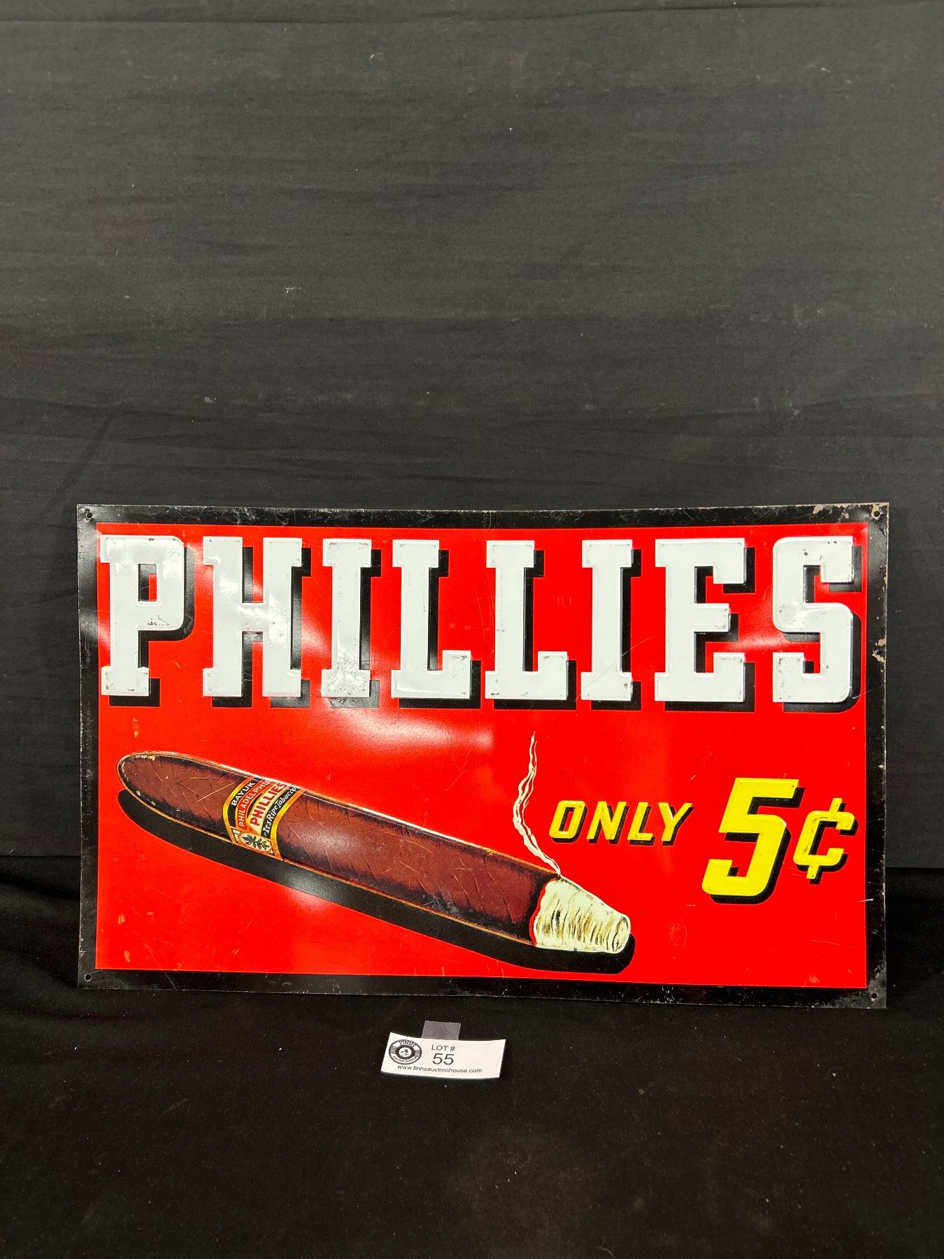 Vintage Phillies Advertising Tin Sign. Approx. 10 1/2" x 17 1/2"