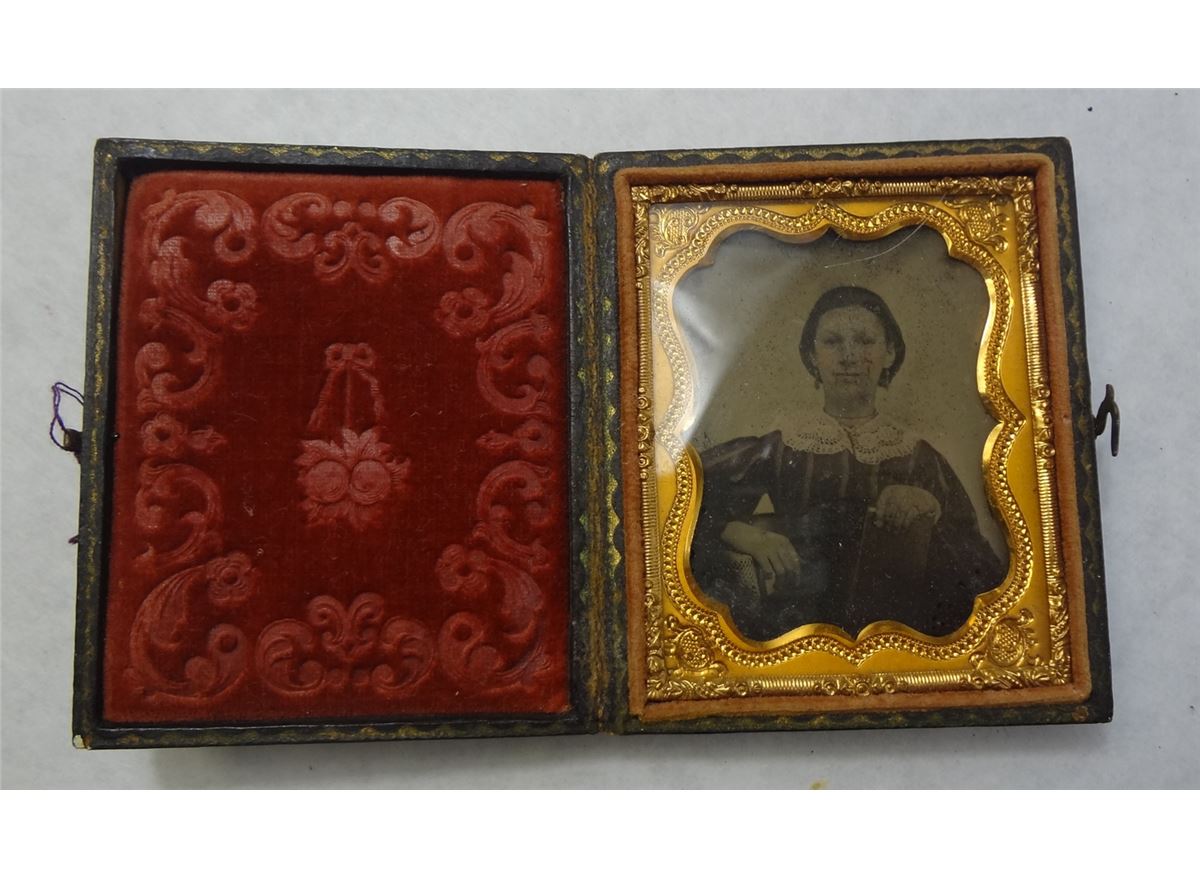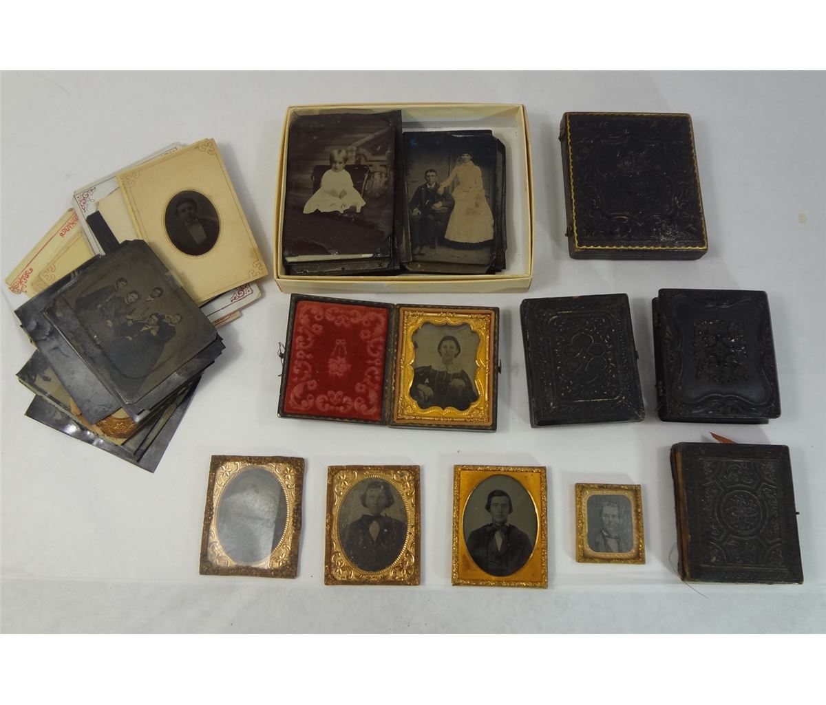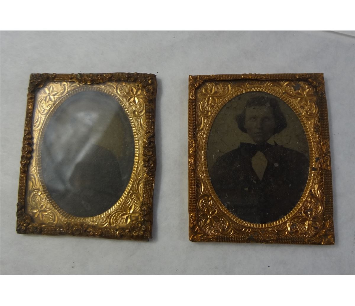 This lot includes an assortment of old vintage photos, book style photo frames and small gold finished frames with pictures. Good condition! Est. $100-$125