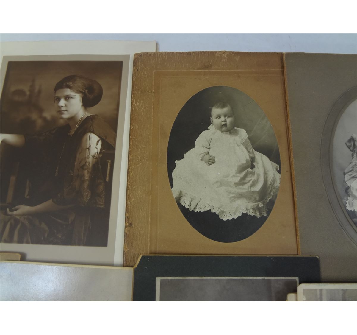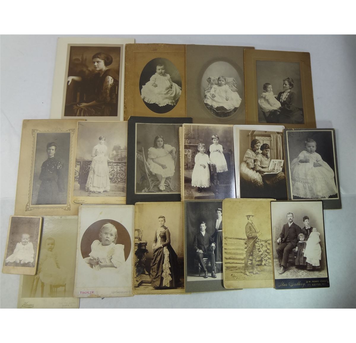 This is an assortment of vintage photos, most of which are on a hard cardboard background. 18 photos total. Est. $35-$45