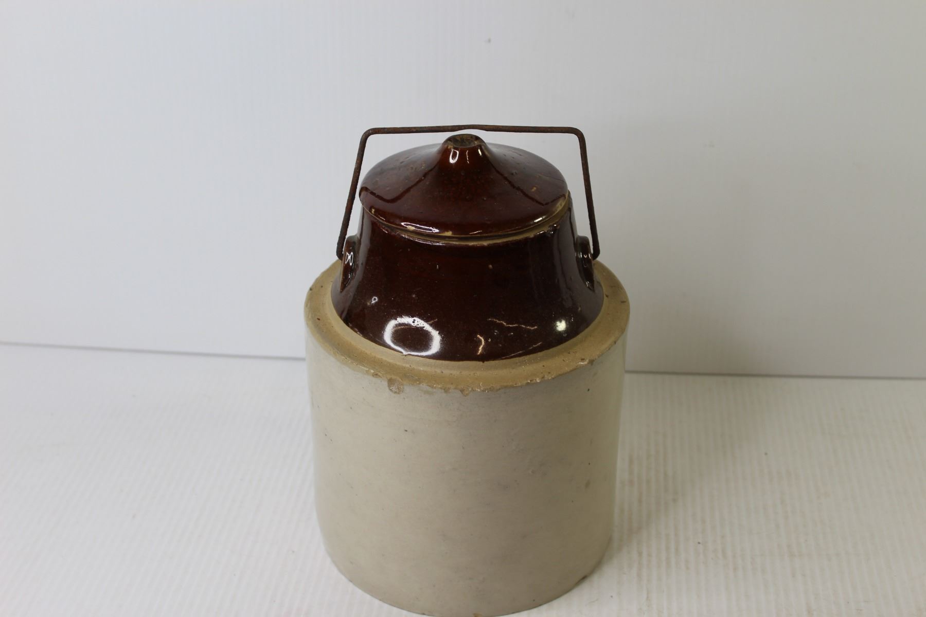 Vintage Pickle Crock (wire not holding top on - chipping on rim)