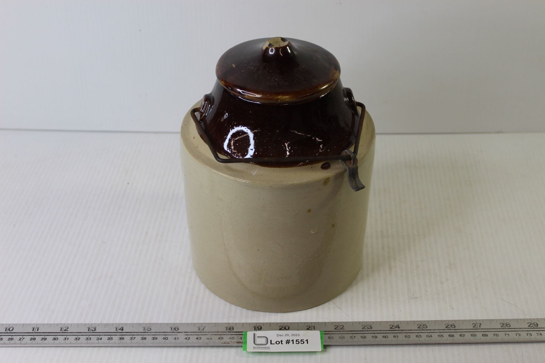 Vintage Pickle Crock (wire not holding top on - top of lid has a chip)