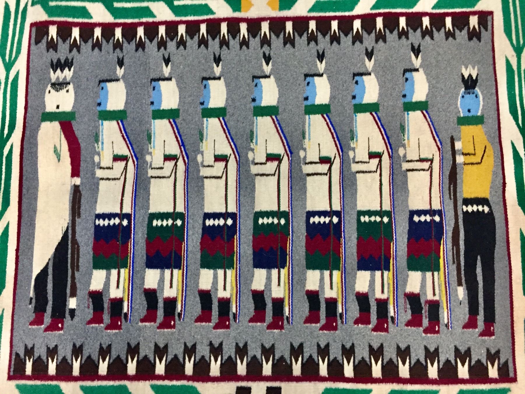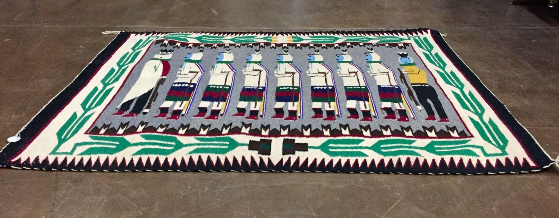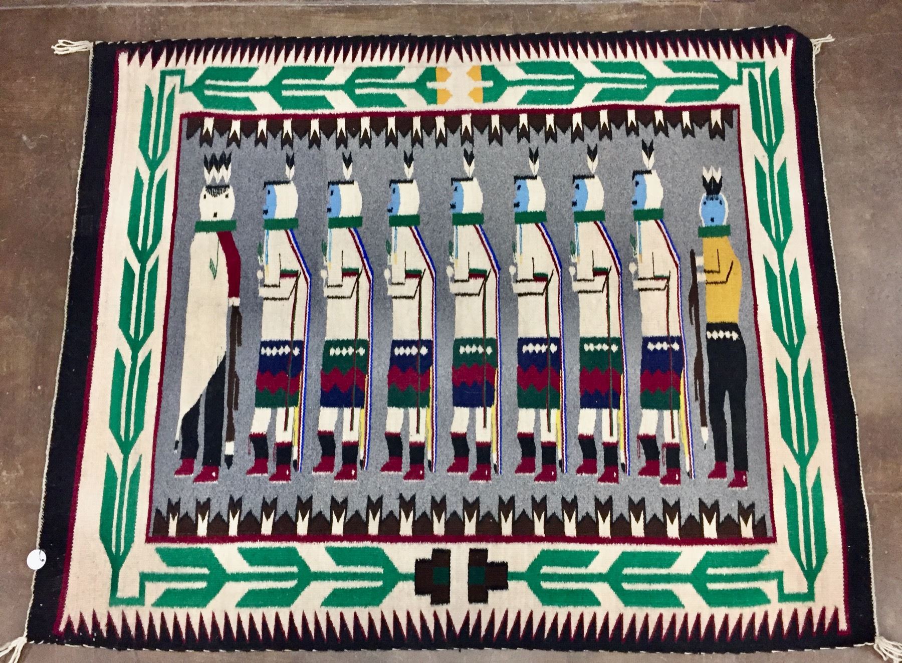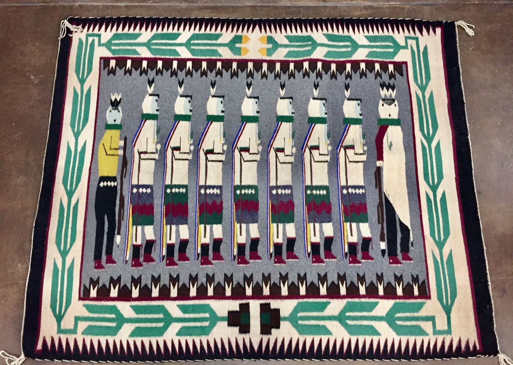 Description: For your consideration, we offer for sale this vintage Pictorial Navajo Textile featuring bright colors in a tight weave. Maker: Unknown Navajo Weaver. Approx. Age: Circa 1970s. Size: 51-1/2”w x 42” long. Condition: Fair for its age, fading, wear and aging expected. Please look closely at the pictures - they are an important part of our description. Shipping: There will be a $5 handling / packaging fee for shipping this lot. The actual cost of postage will be added on top of that.