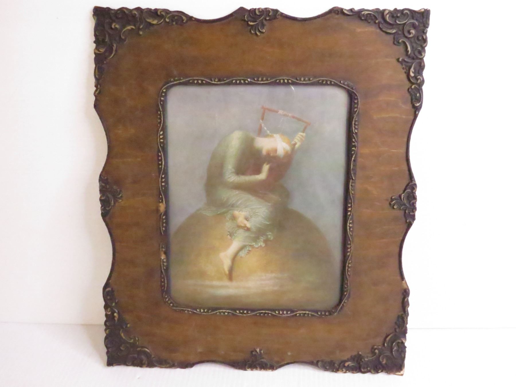 Vintage Picture - Carved Wooden Frame (13" x 15 1/2")