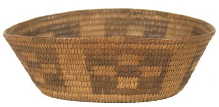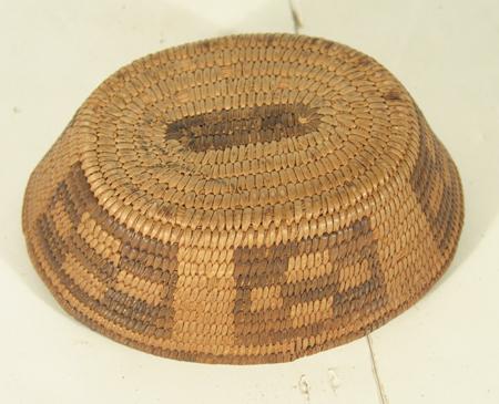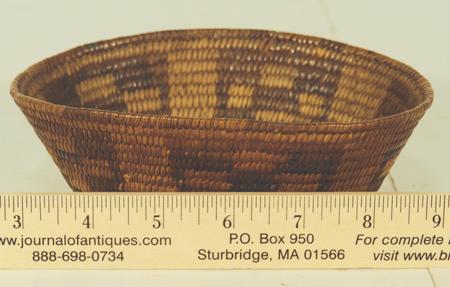 Beautiful small oval shaped bowl with flared sides, black start, and cross-in-box design. Condition: very good, minor rim repair. 2-1/4" x 6-1/2" x 5"