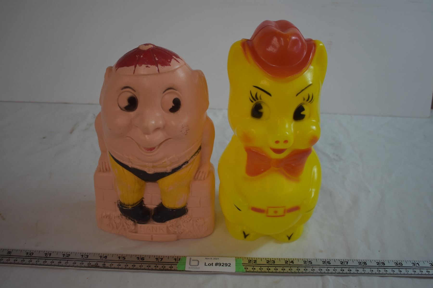 Vintage Plastic Pig Piggy Bank and Humpty Dumpty Piggy Bank