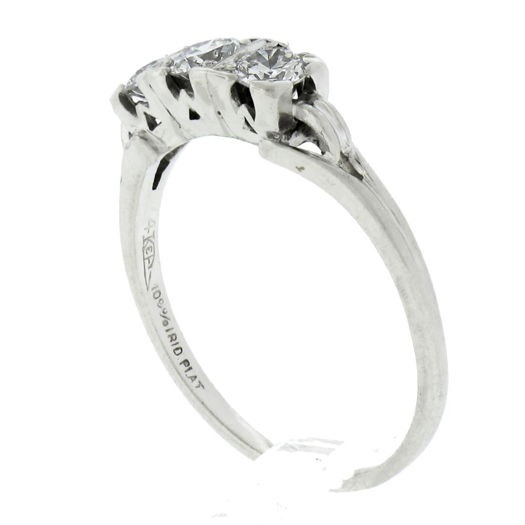 Vintage Platinum 0.80 ctw Pave Old Transitional Cut Diamond 3 Stone Band Ring