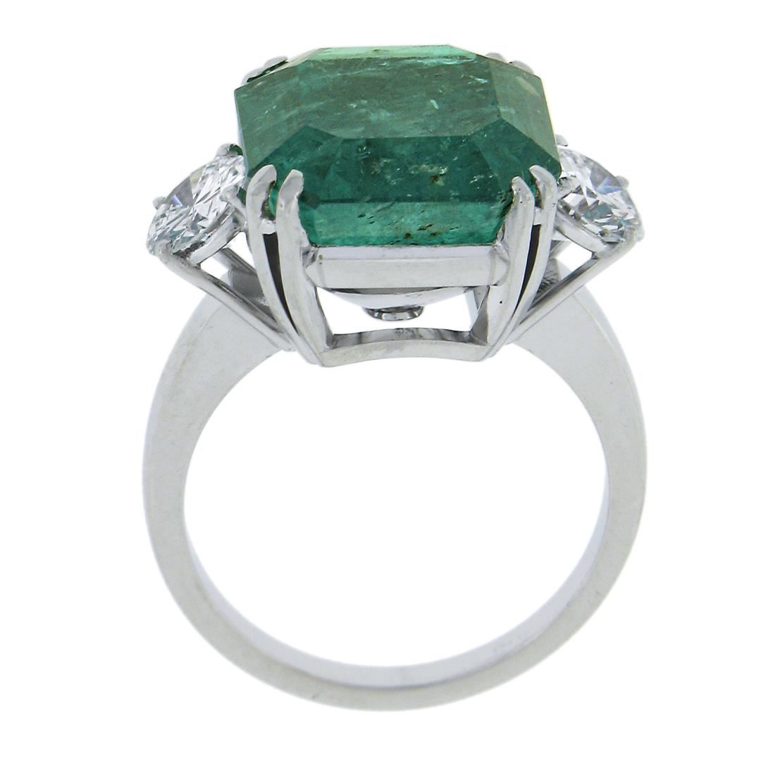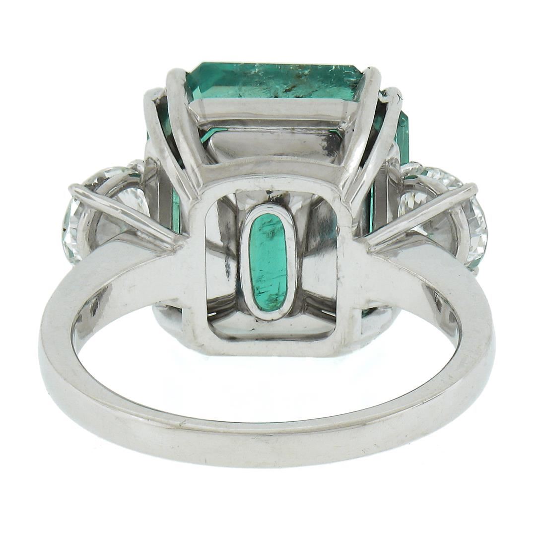 A vintage solid platinum cocktail ring, with 1 AGL graded square cut natural emerald (9.26ct), and 2 round cut natural diamonds (F/G - VS1/VS2 ; 1.05ctw). The ring is size 6.5, weighs a total of 9.53 grams, and measures 13.1mm wide. Comes with all original relevant certifications.