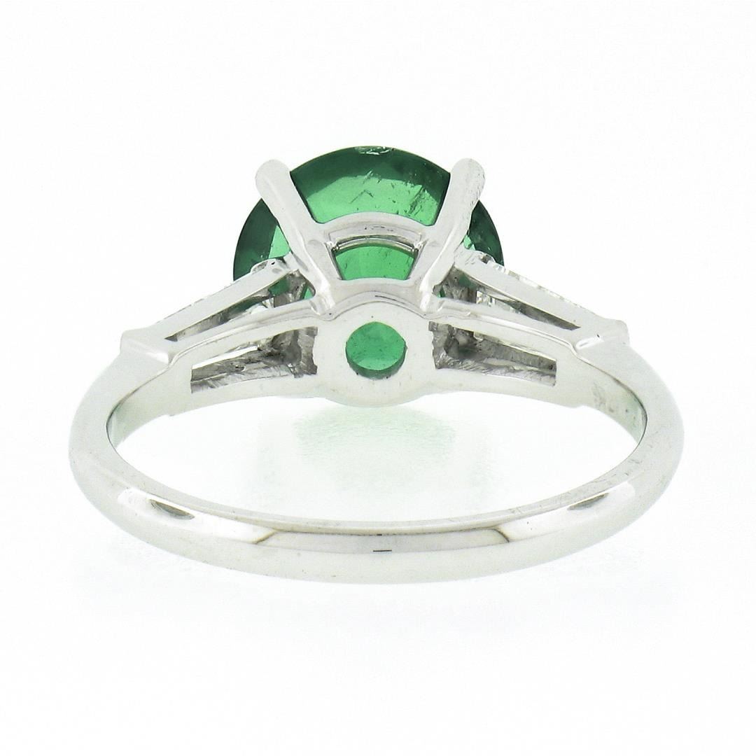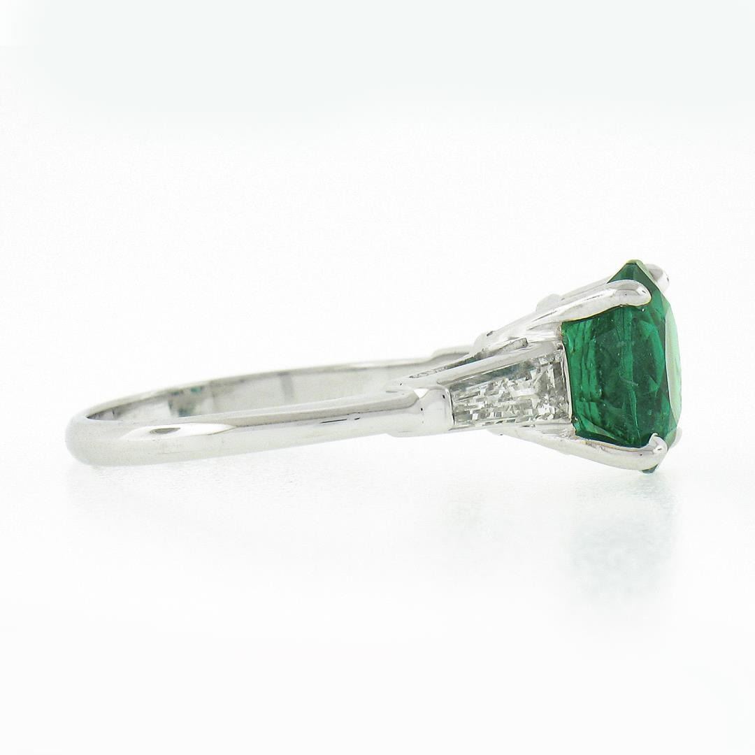 Vintage Platinum 3.04 ctw GIA Round Brilliant Green Emerald Baguette Diamond Rin