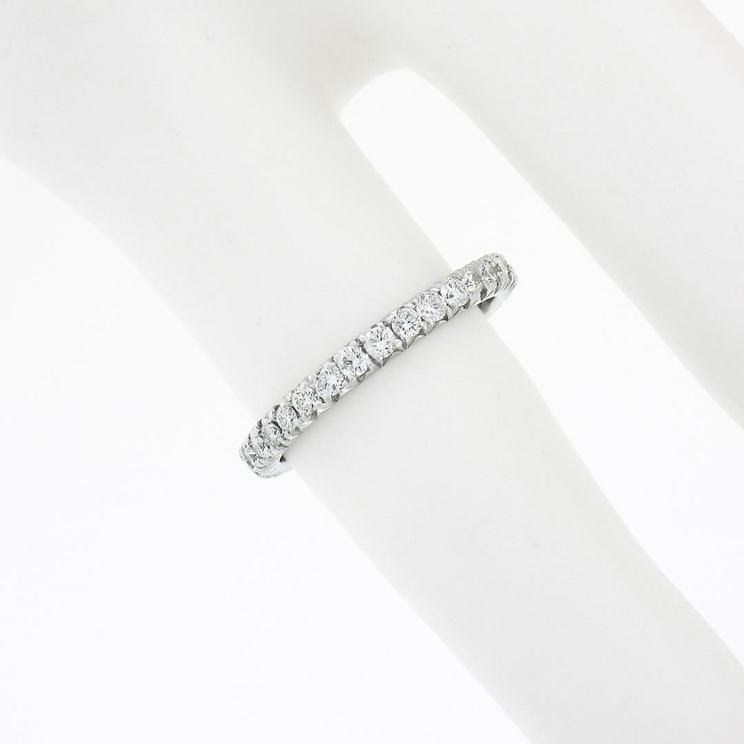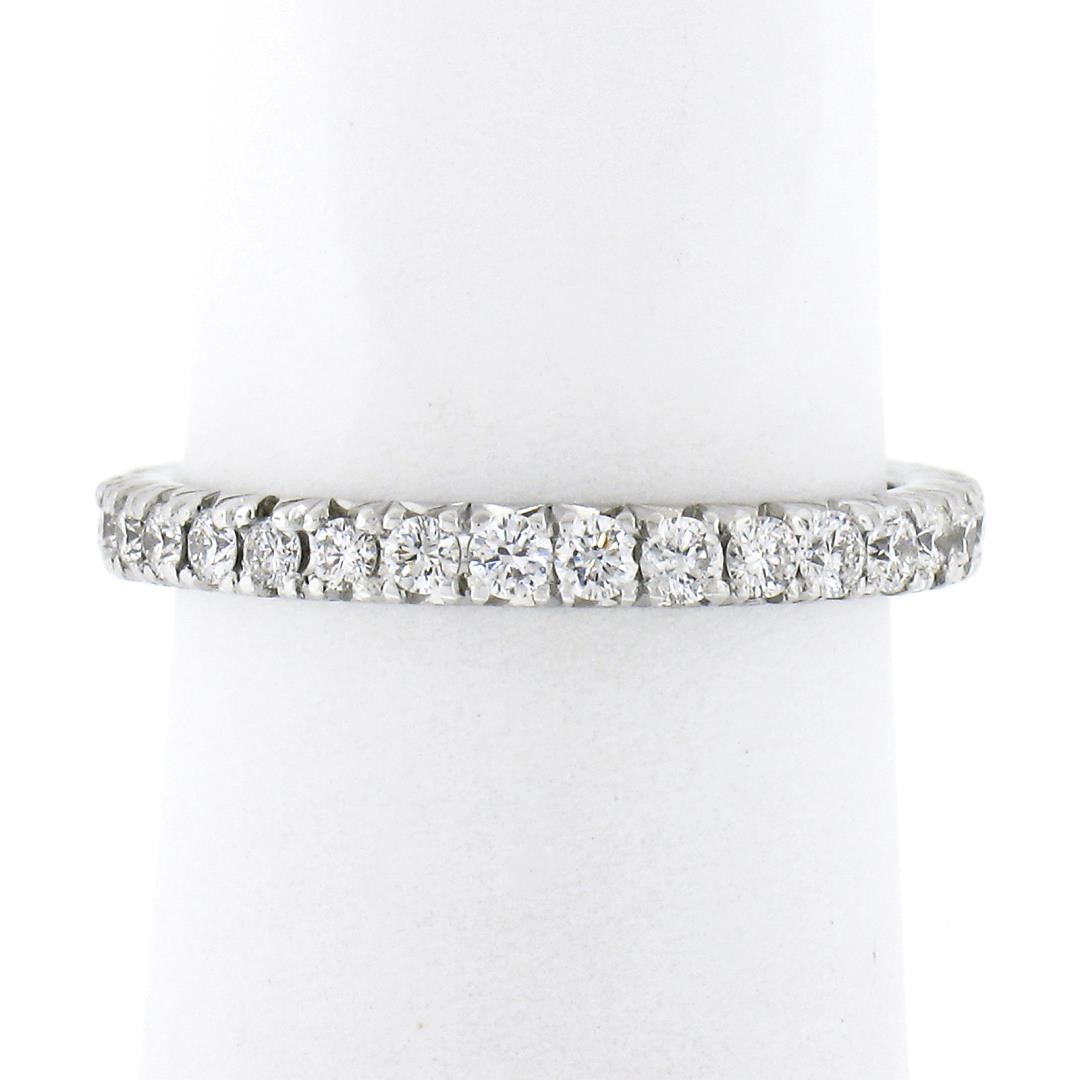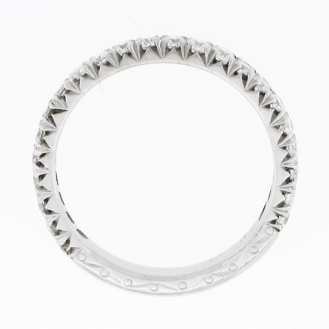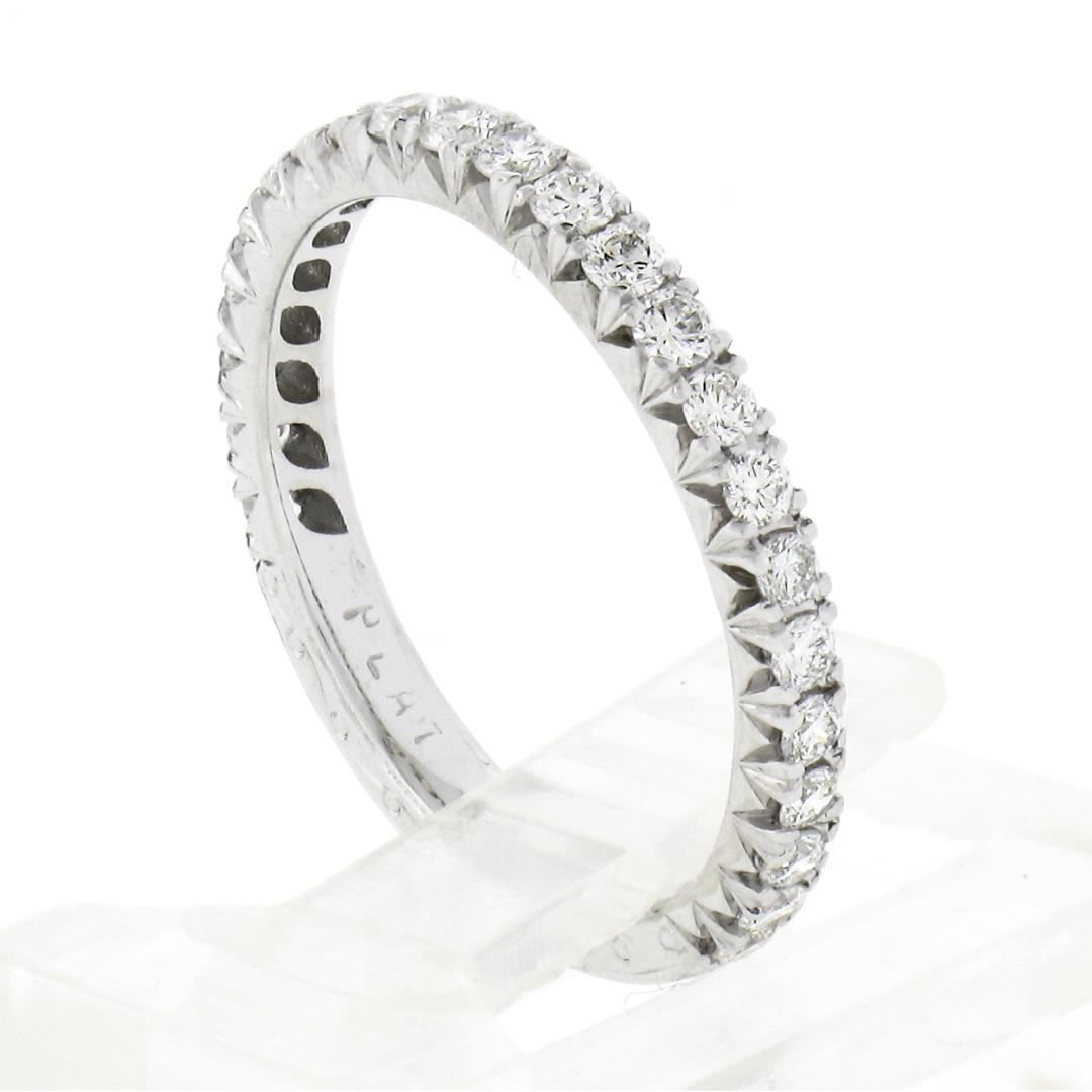 A vintage platinum stack band ring, with 23 round brilliant cut natural diamonds (F/G - VS1/VS2 ; 0.35ctw). The ring is size 4.0, weighs a total of 2.55 grams, and measures 2.1mm wide.
