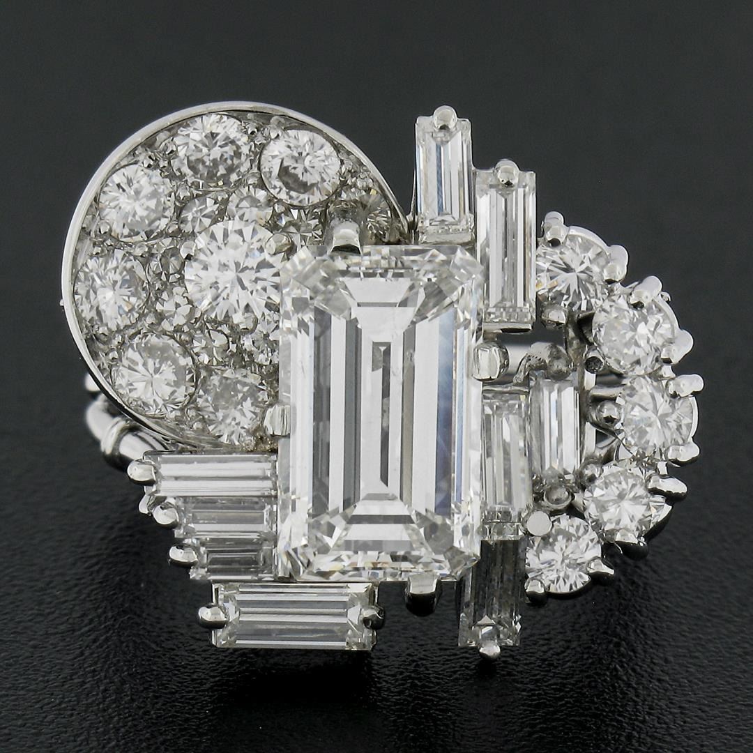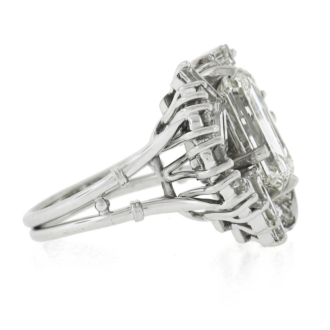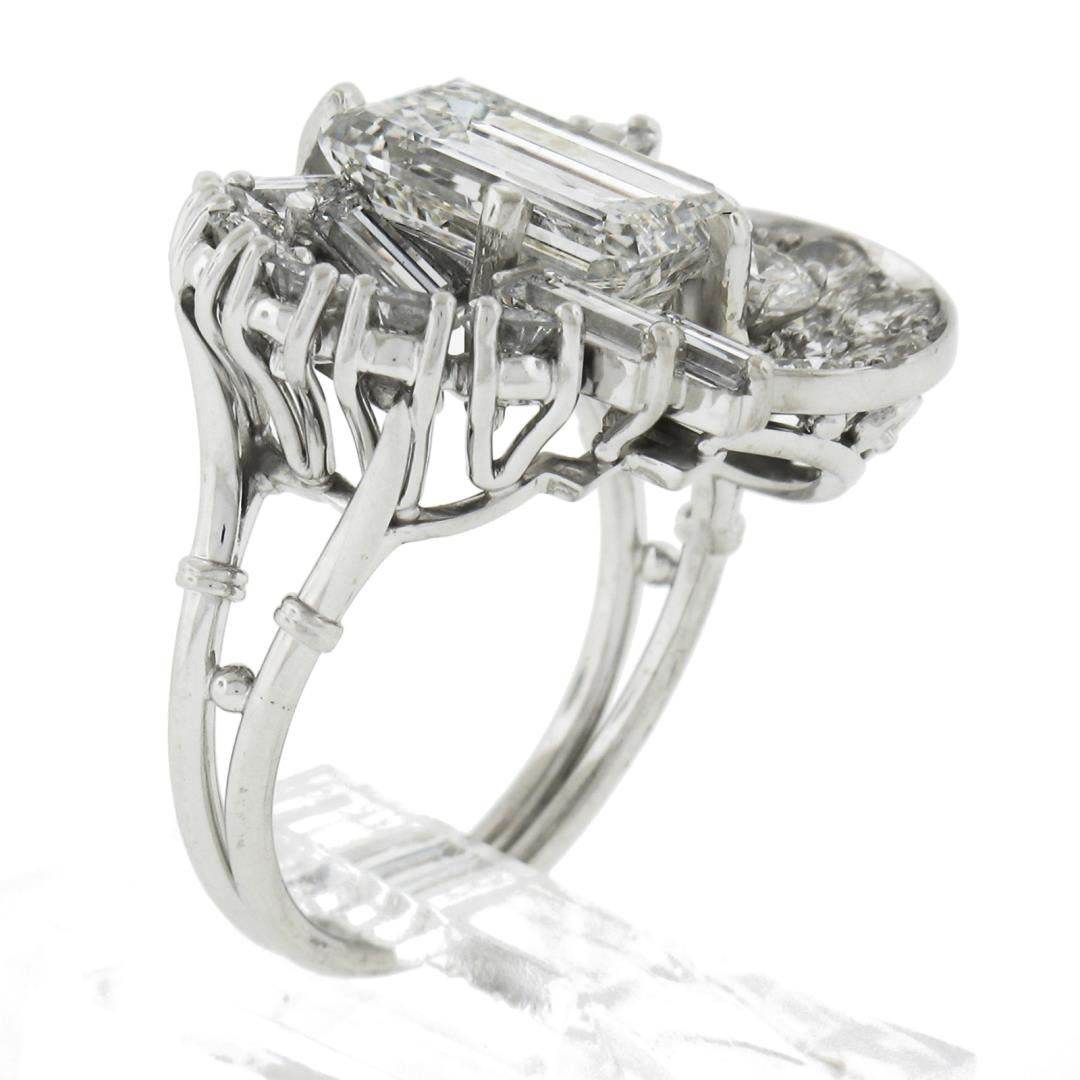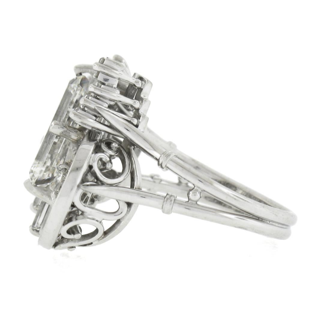 A vintage solid platinum cocktail ring, with 1 GIA graded emerald cut natural diamond (H - SI2 ; 3.00ct ), and 9 baguette cut, 21 round & single cut natural diamonds (G/H - VVS2/VS1 ; 2.10ctw). The ring is size 5.5, weighs a total of 9.08 grams, and measures 17.5mm wide. Comes with all original relevant certifications.