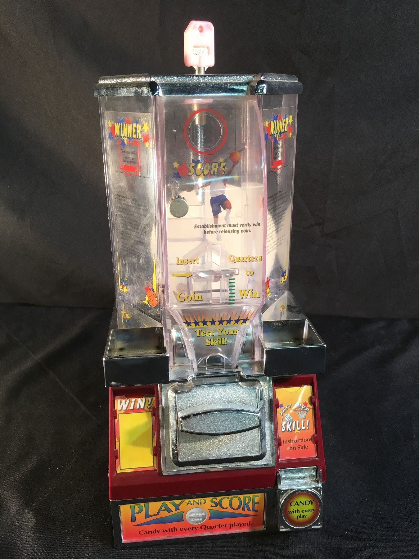 Vintage "Play And Score" 25 Cent Basketball Candy Dispenser Game On Swivel Base. With Key. Great Condition.