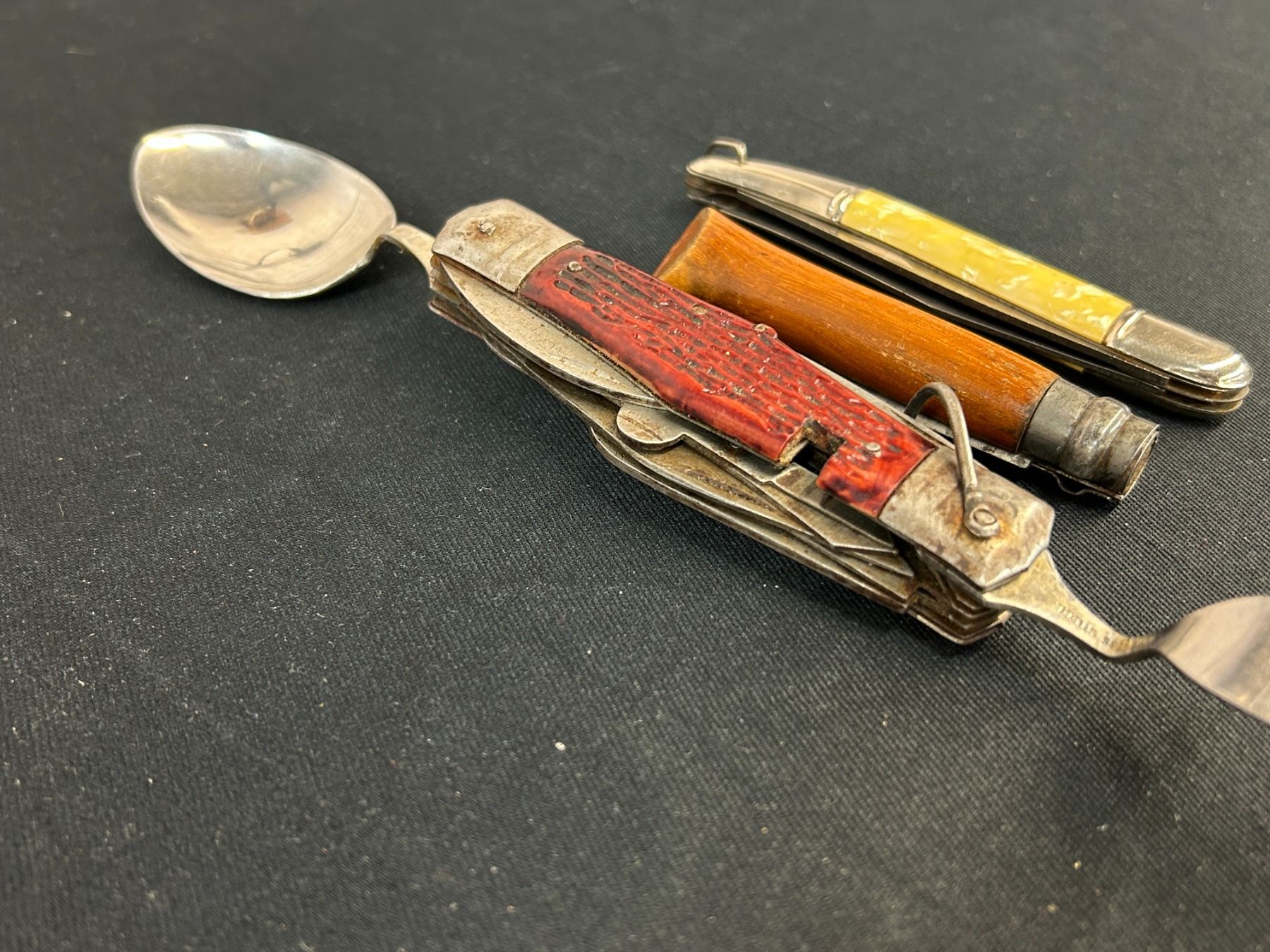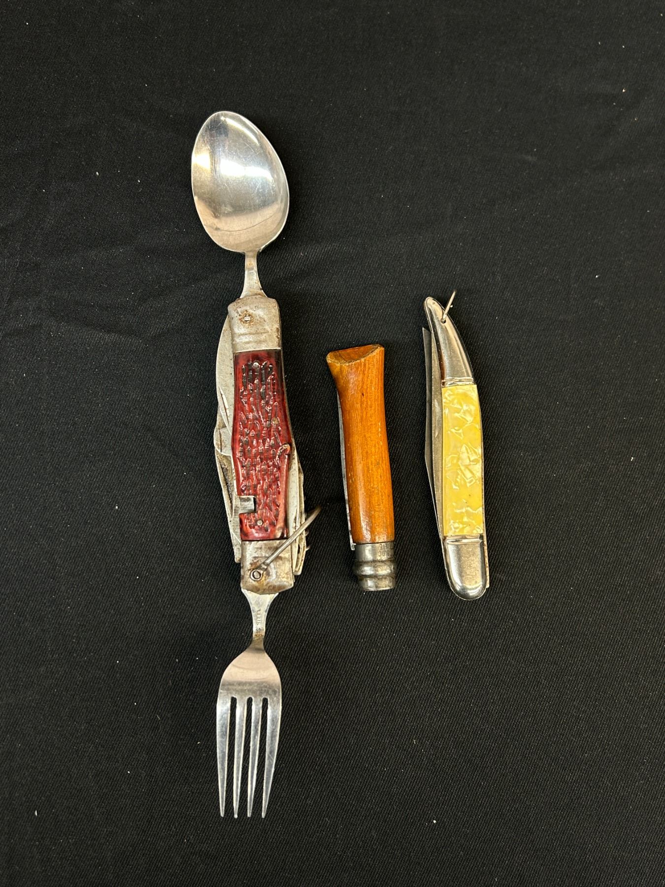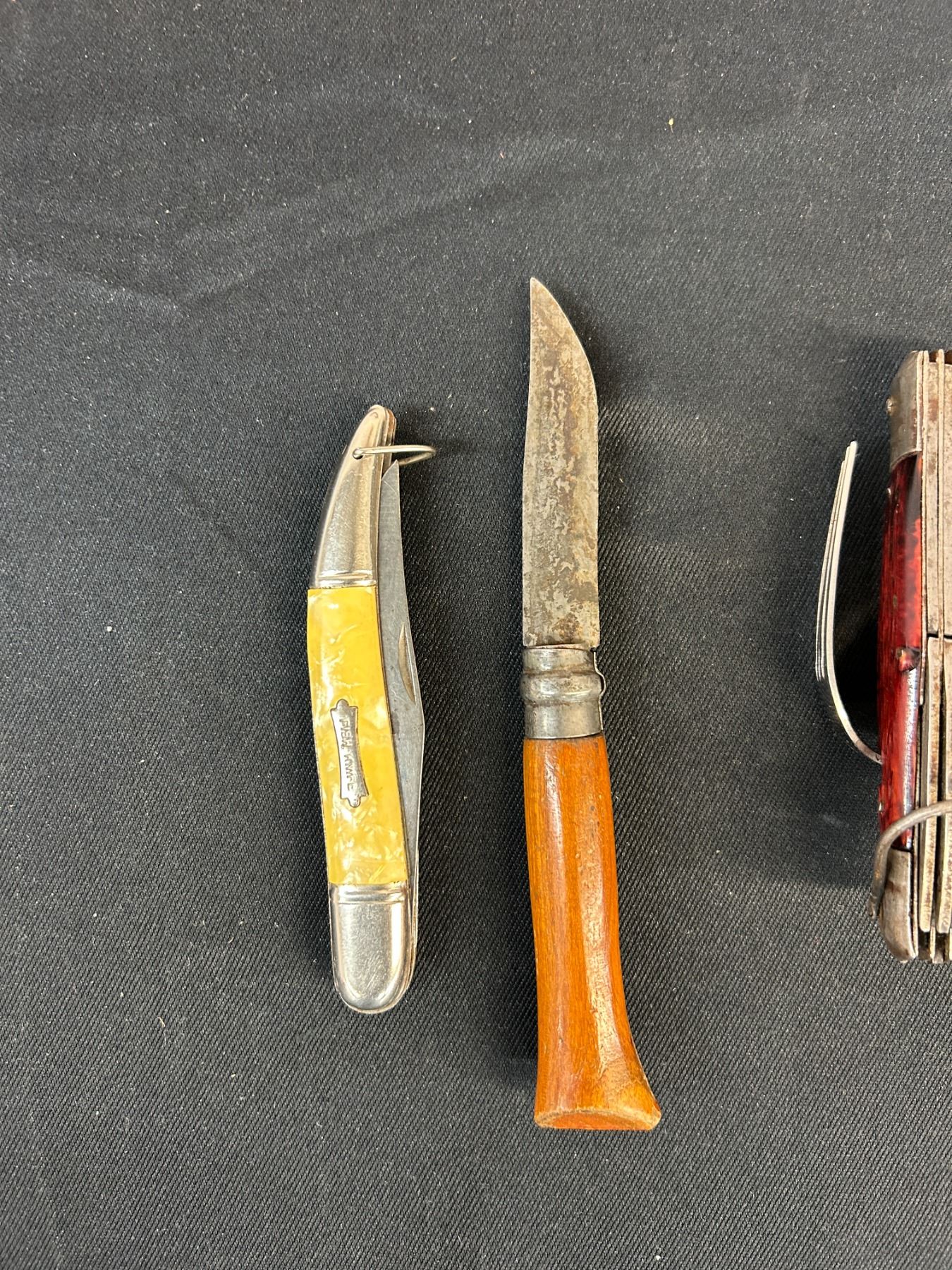 Vintage Pocket Knife Lot w/ Choix Opinel no.7, Imperial Fish knife 3.5" & Forest Friend? Japanese Multi tool