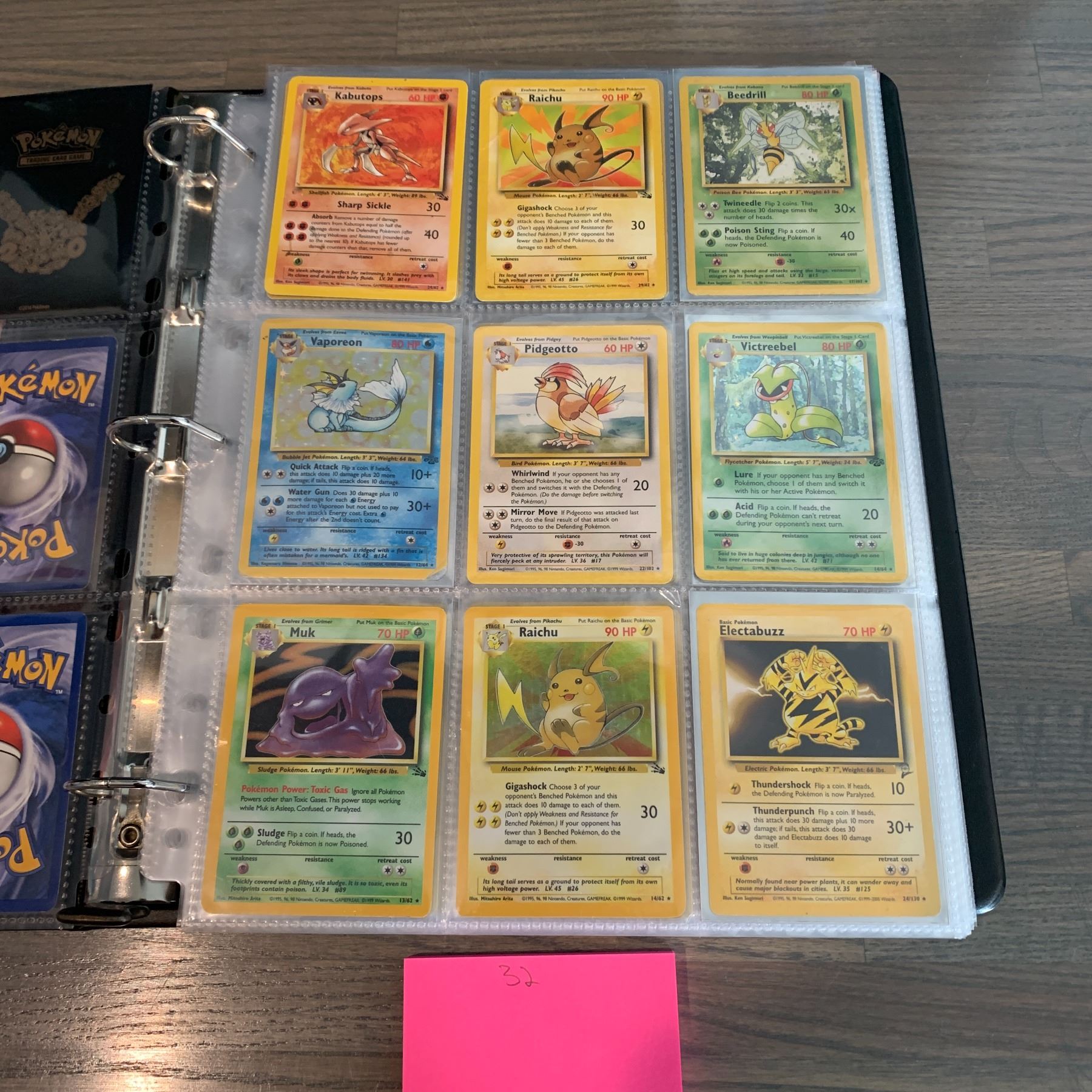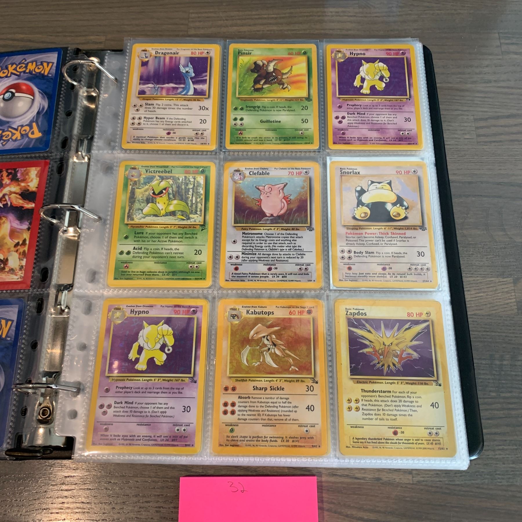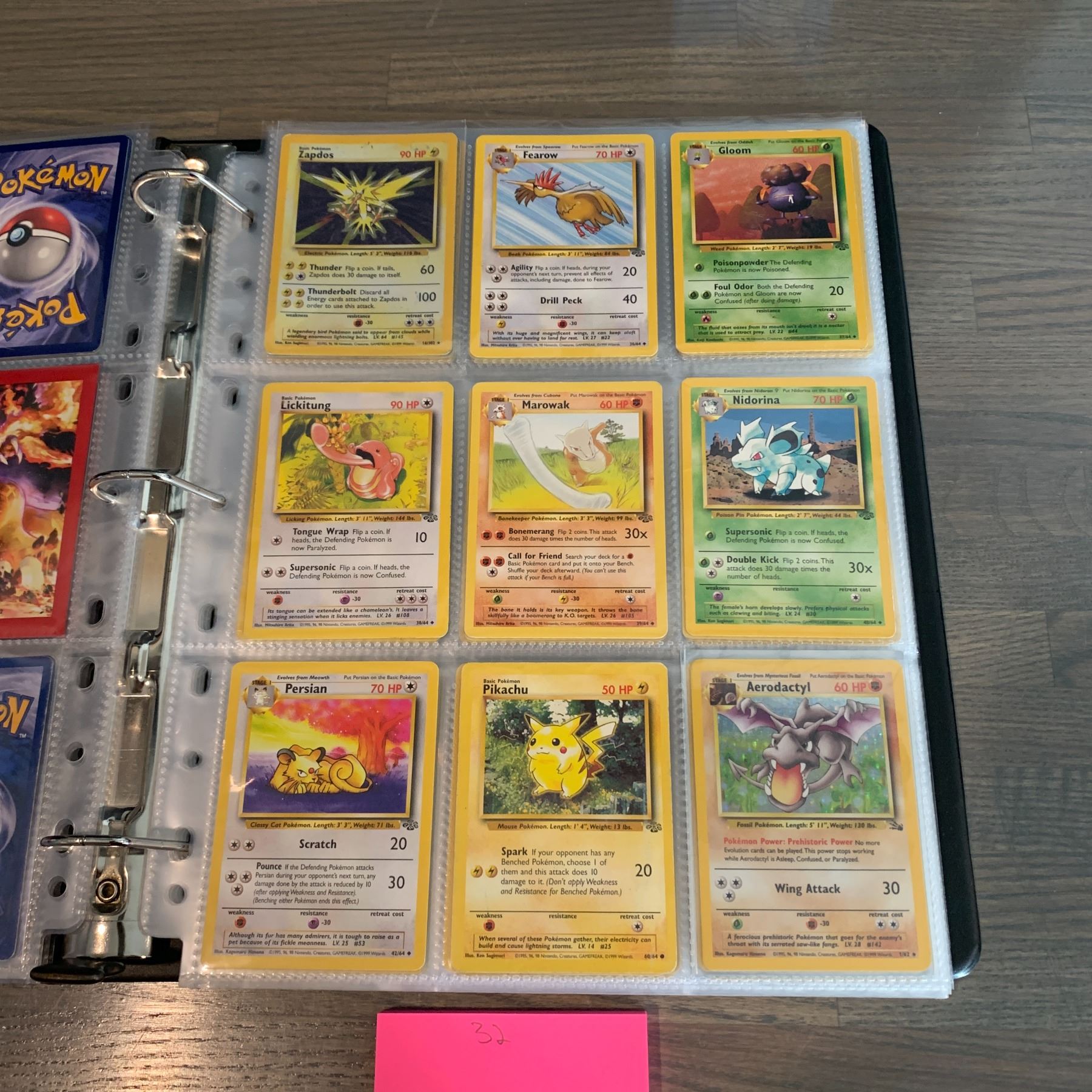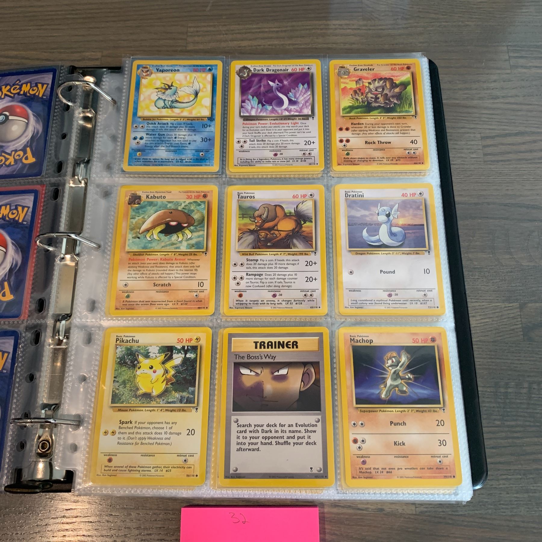 Binder filled with Vintage Pokemon cards. Includes holos, 1ed, shadowless. Cards are from base set - Legendary collection. See photos for conditions. If you are interested in consigning with us, email aeronhouse1994@gmail.com or fill out the consignment form on ahauctionhouse.com