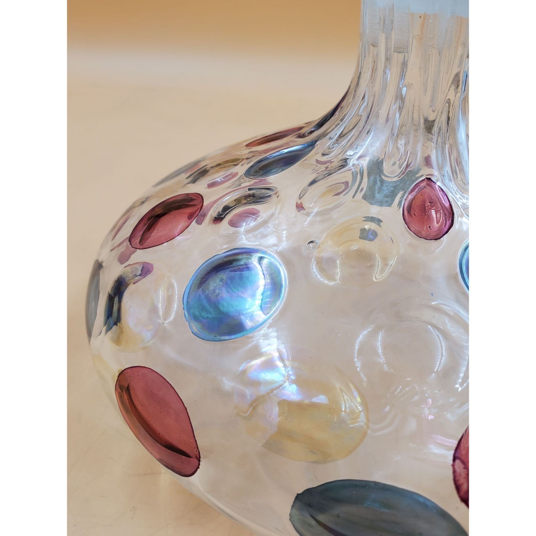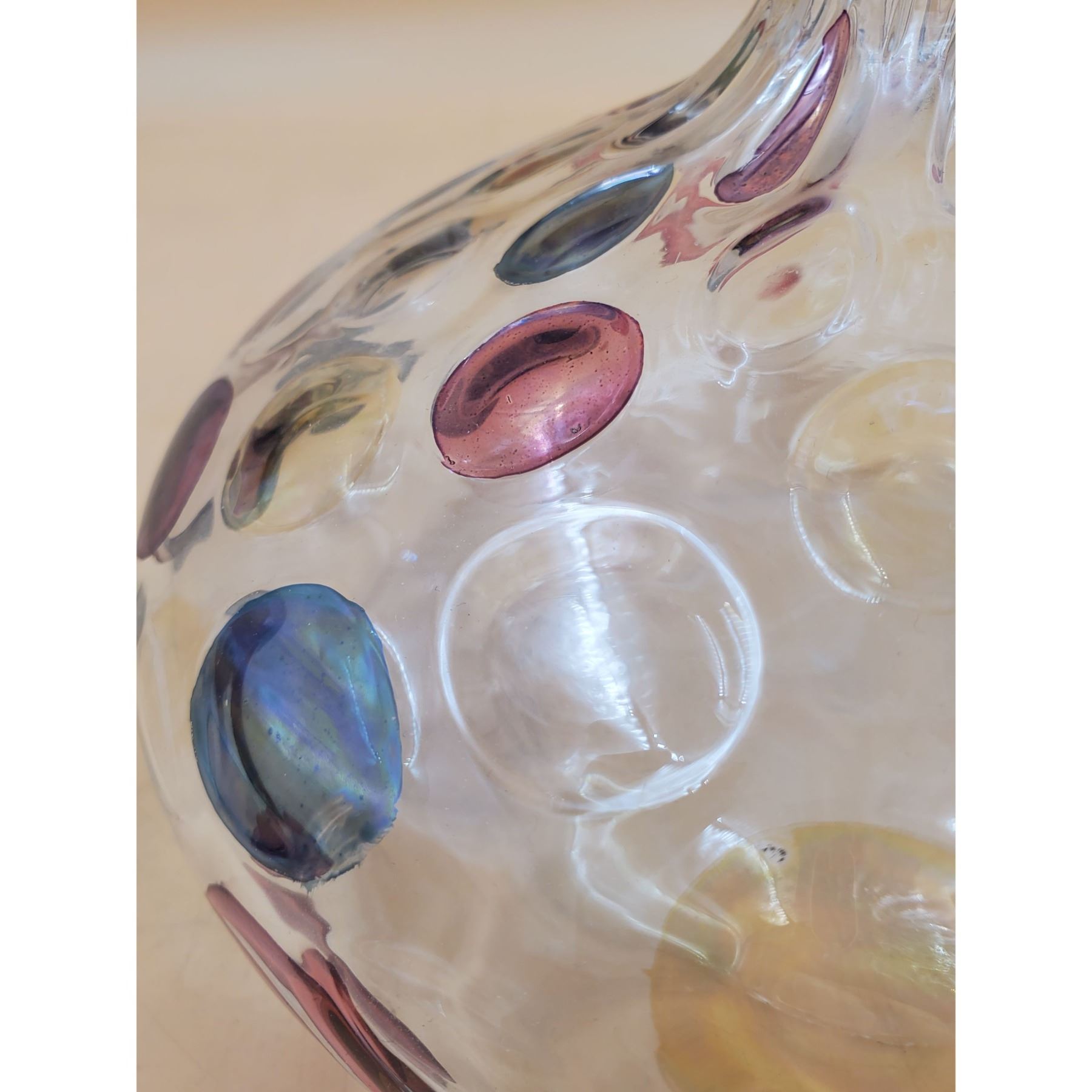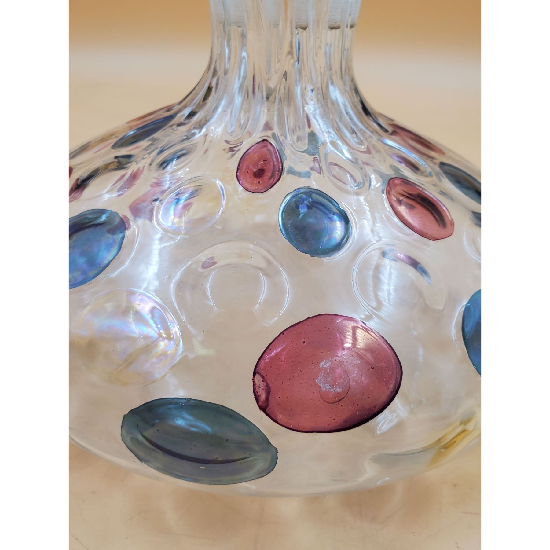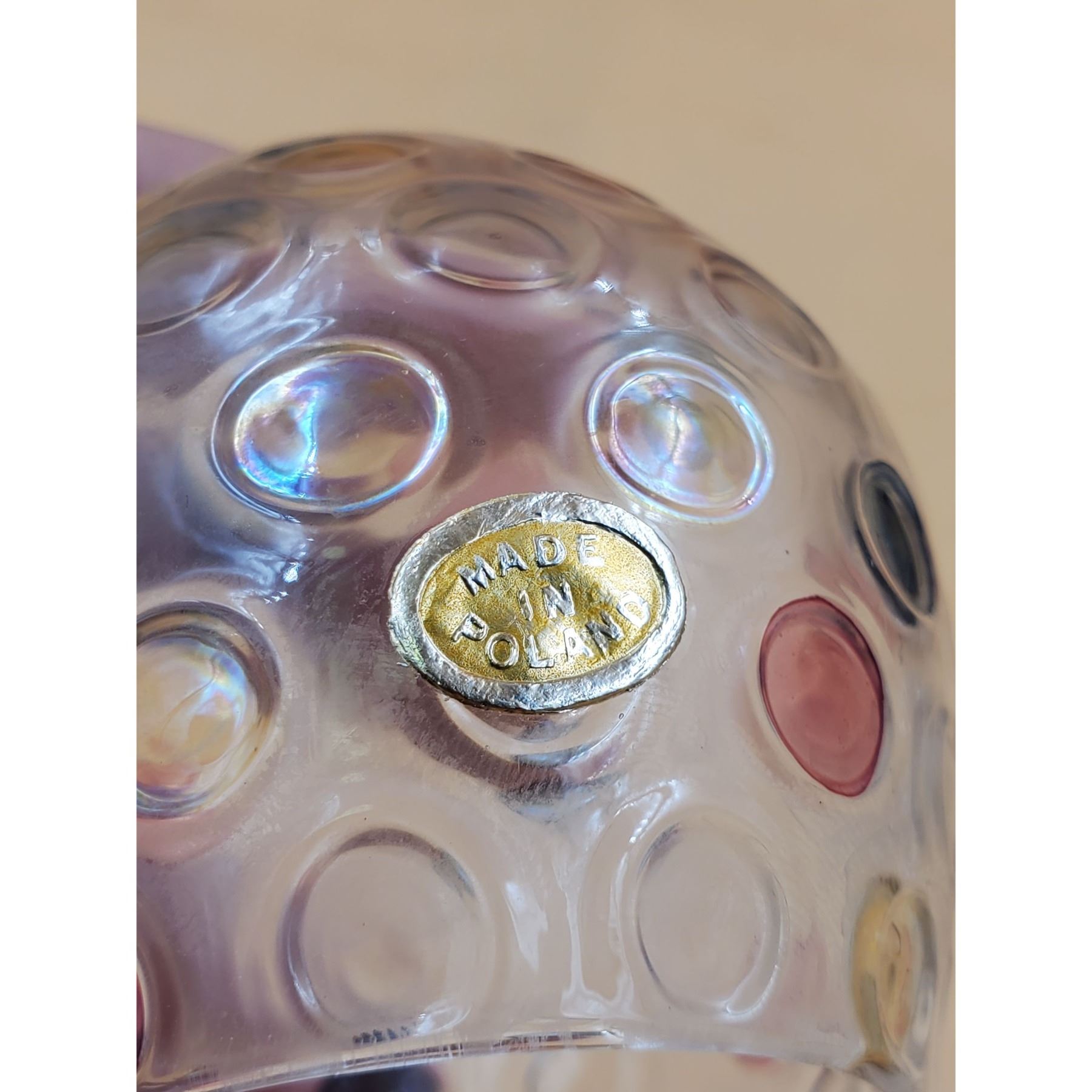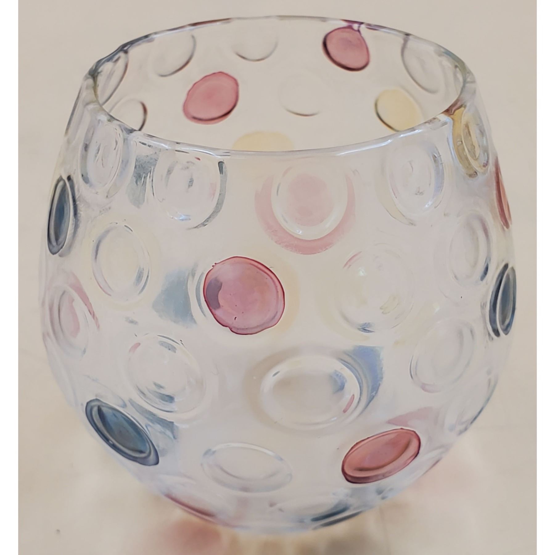 Vintage Polish Polka Dots Decanter and Glasses. The Decanter measures 8 1/8" x 8 1/8" x 6 7/8", and the stopper measures 2" x 2" x 4". Each of the cups measures 3" x 3" x 2 5/8". Provenance: One Person Private Estate Central Florida.