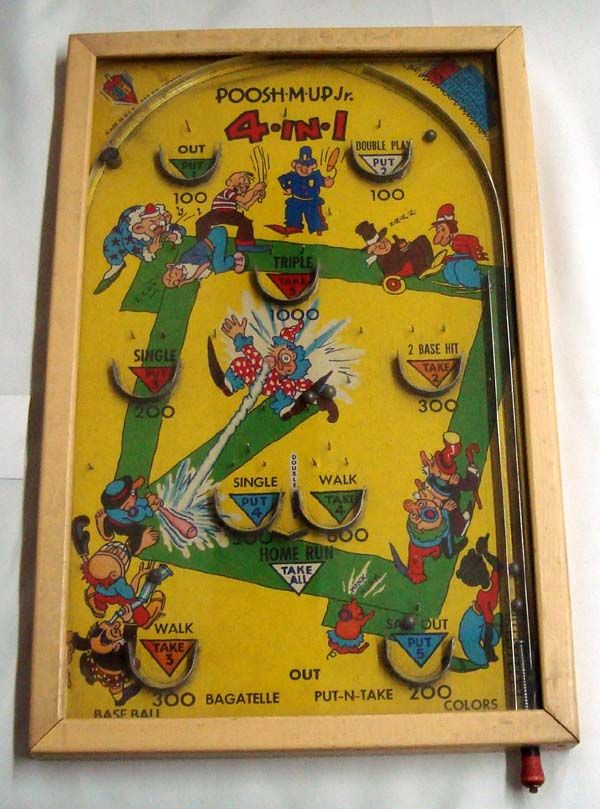 Vintage Poosh-M-Up Jr. Game. Made by: Northwestern Products Co., St. Louis, MO. In working condition. Measures approx. 17''H x 11''W.