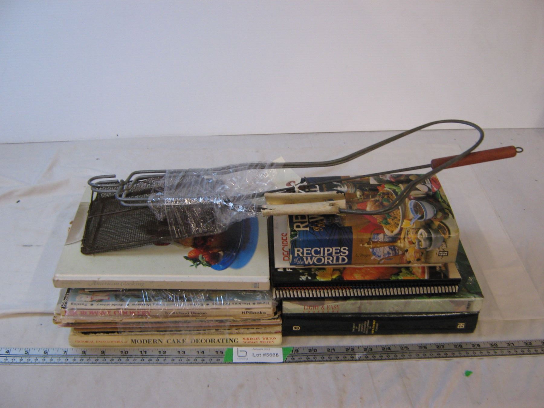 Vintage Popcorn Maker with large lot of cooking books and magazines