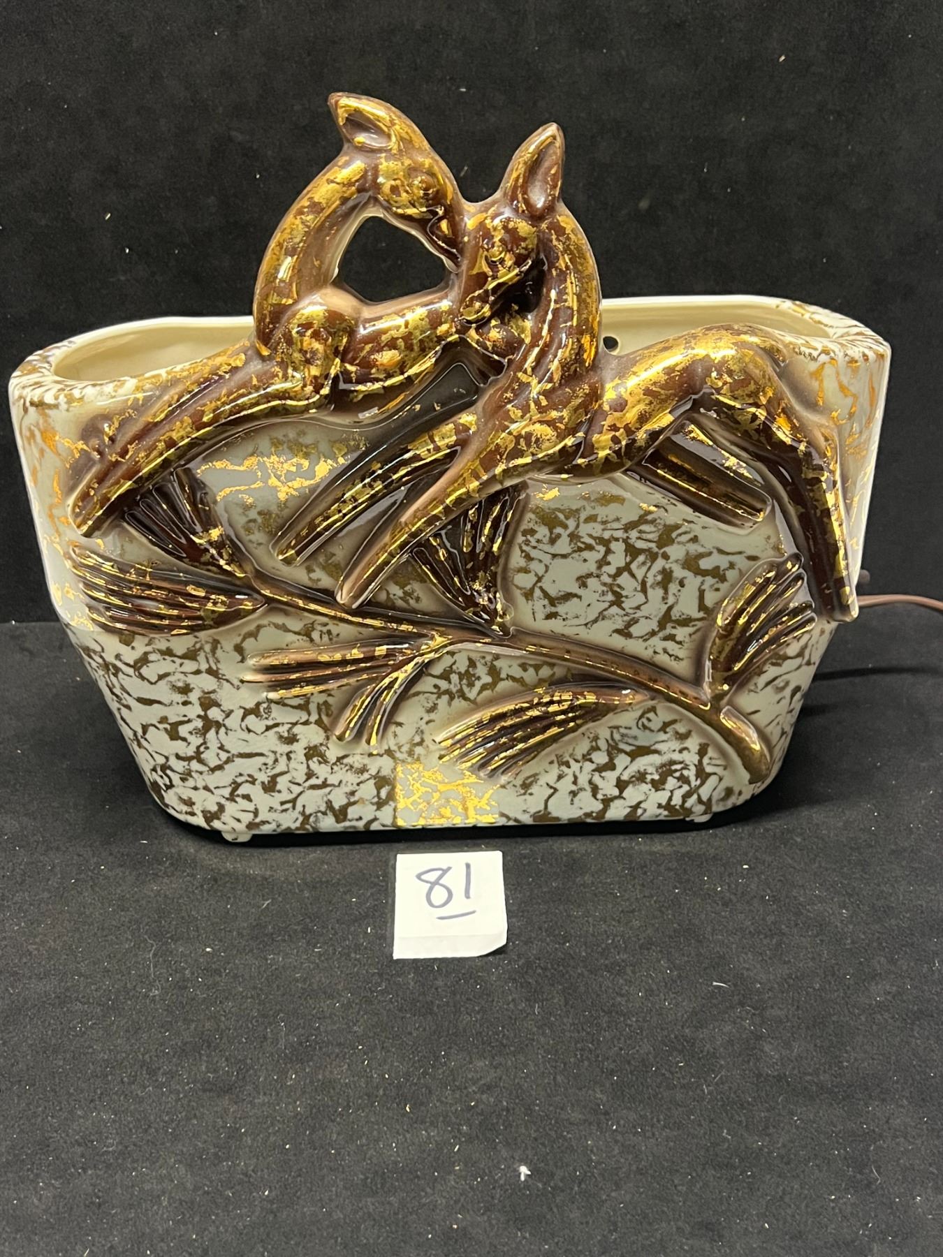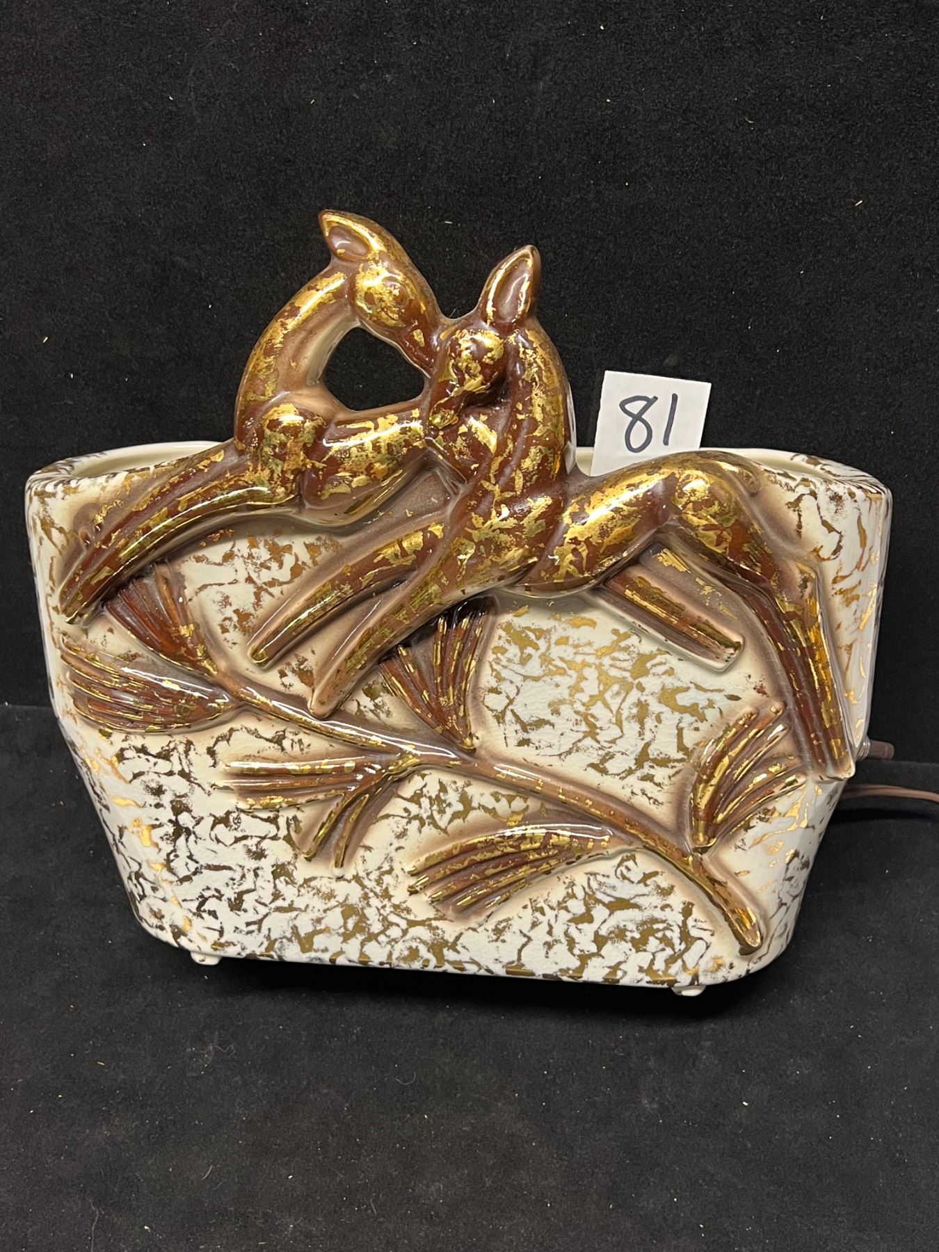 Vintage Porcelain Hand Painted Deer TV / Table Lamp MCM Approx: 10x9.75x4.5"