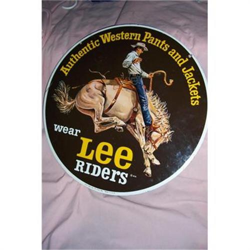 <tr><td>Title:Vintage Porcelain Lee Riders Metal Sign</td></tr>