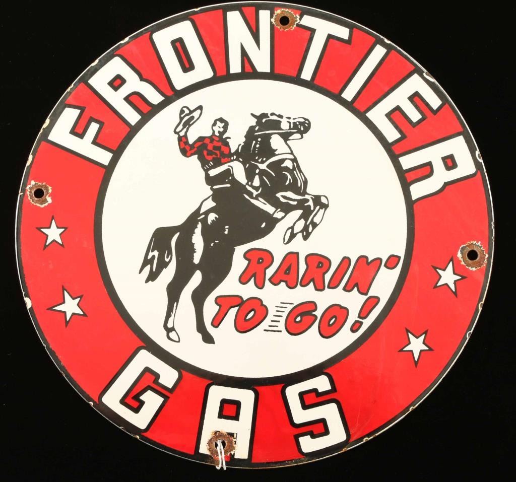 Vintage Advertiser for Frontier Gas, reads "Rarin' To Go!". Unknown age