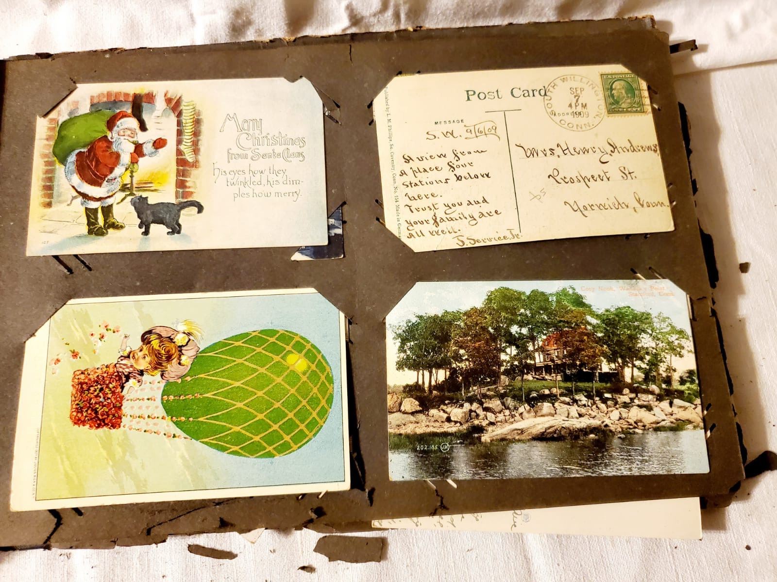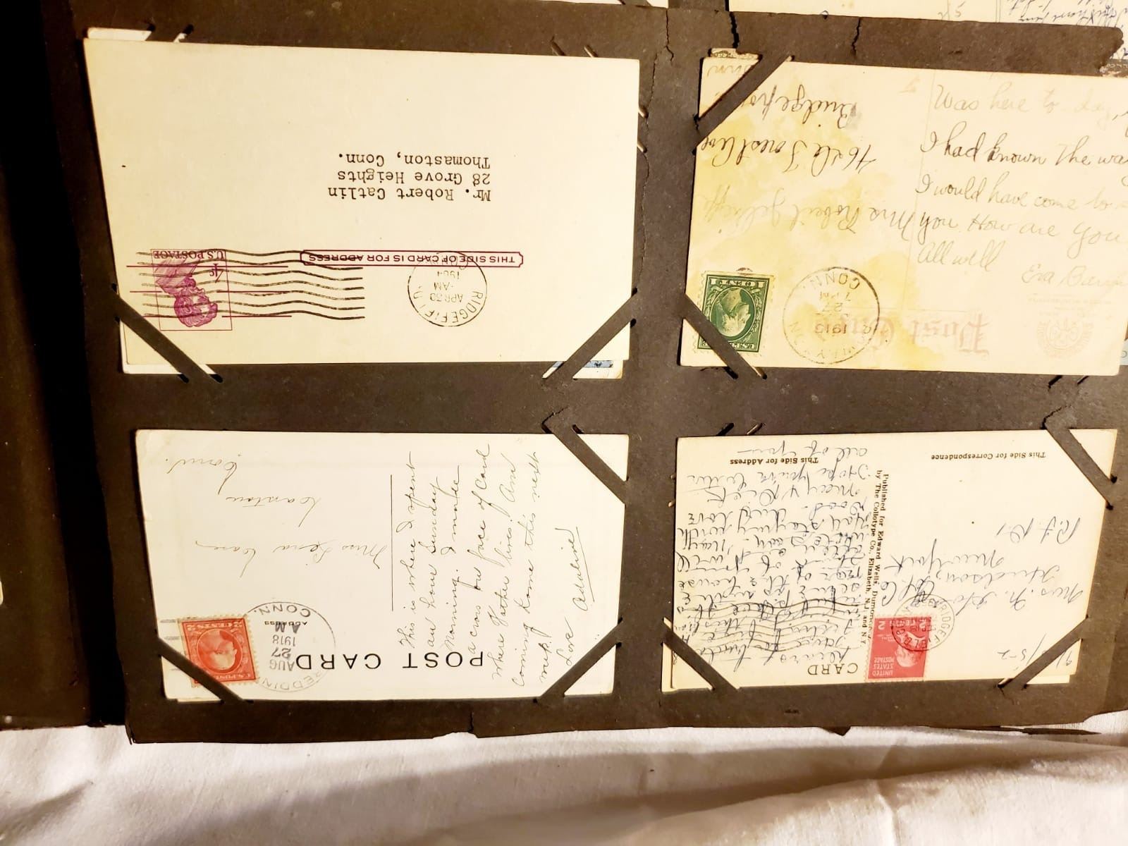 Vintage post card collection. Large collection of estate vintage post cards, correspondence, etc. All being sold as found at the estate. Many Connecticut towns and good stamps as shown on back, beautiful post cards from a long time ago. Very hard to find collection!