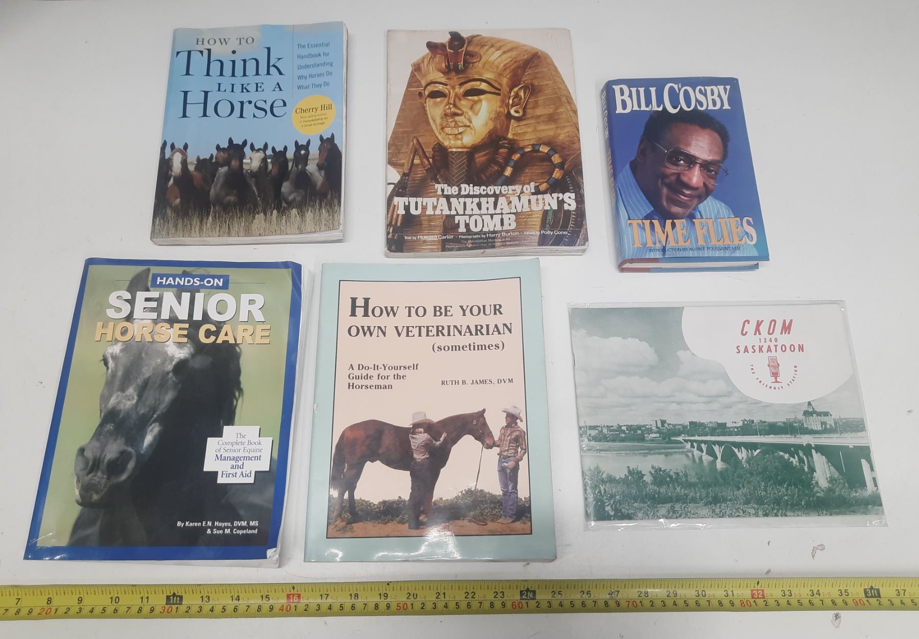 Vintage Post Card of CKOM 1340 Saskatoon Radio Station, Horse Books, Bill Cosky - Time Flies Book, etc.
