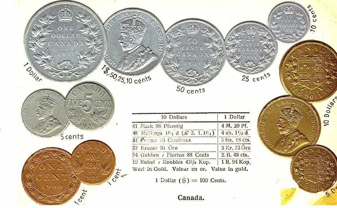 Vintage Postcard, World Coinage Money Card. Includes card from Canada depicting Canadian Key date coins Silver Copper & Gold. Should be viewed.
