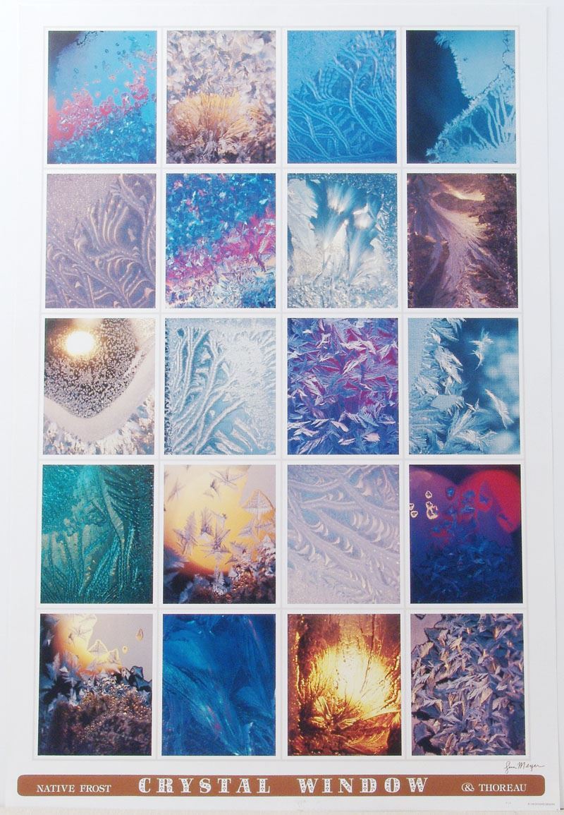 This is a vintage 1988 poster titled Crystal Window. Design by Jim Meyer. 1988 Bygone Designs. Snowflakes/fractals - & Thoreau. SIZE: 24" x 36".