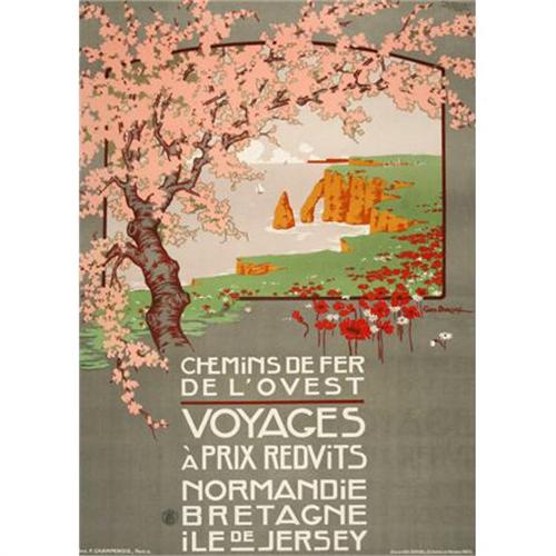 Vintage Travel poster by DORIVAL. From the original printing in 1907. This poster is linen backed, in excellent condition, and measures 29.5 inches wide by 41.25 inches high.