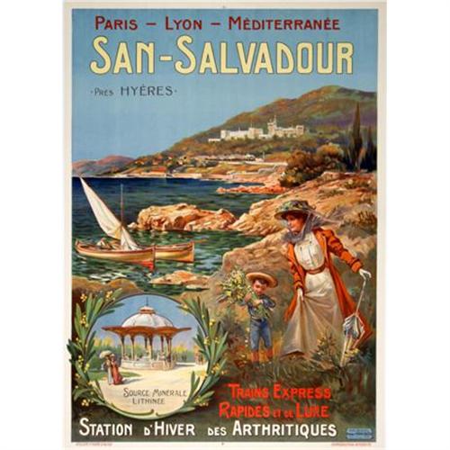 Vintage Travel poster by LESSIEUX. From the original printing in C1900. This poster is linen backed, in excellent condition, and measures 31 inches wide by 42 inches high.