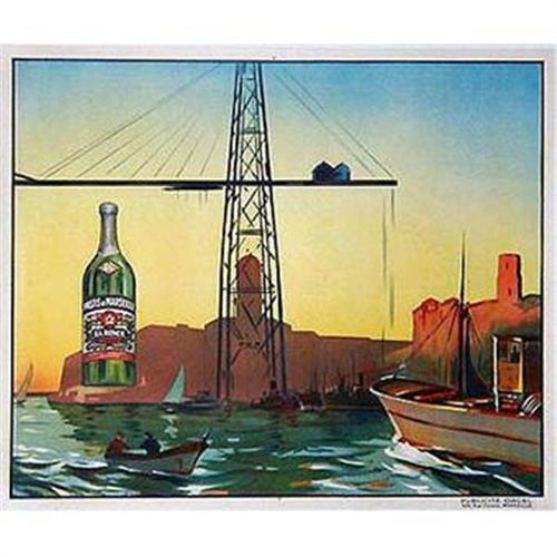 Vintage Liquor poster by UNIC. From the original printing in C1930. This poster is linen backed, in excellent condition, and measures 45.5 inches wide by 40 inches high.