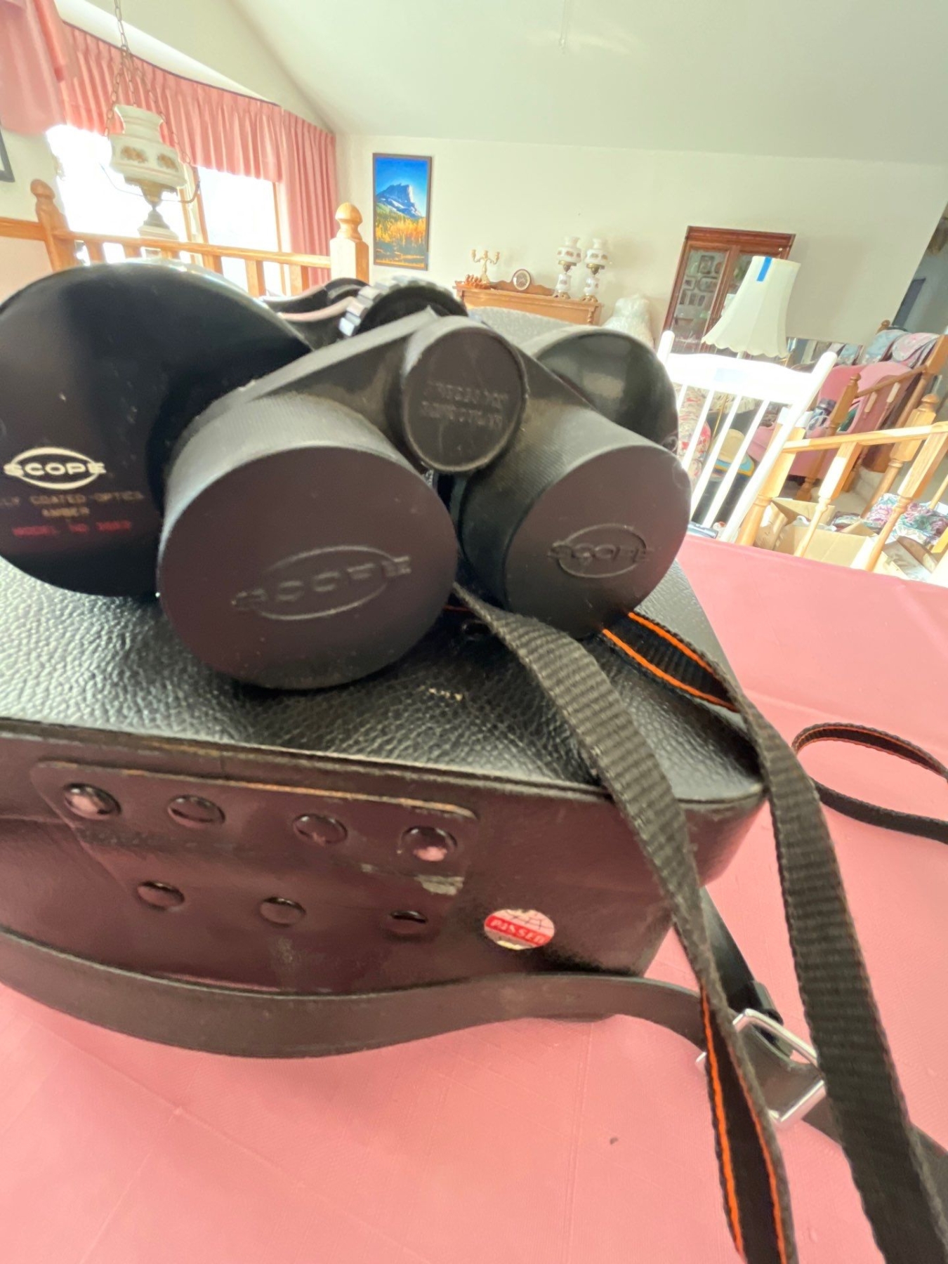 Vintage Precision Binocular Scope binoculars, Model No. 3853, with 7x magnification and a 50mm objective lens diameter.