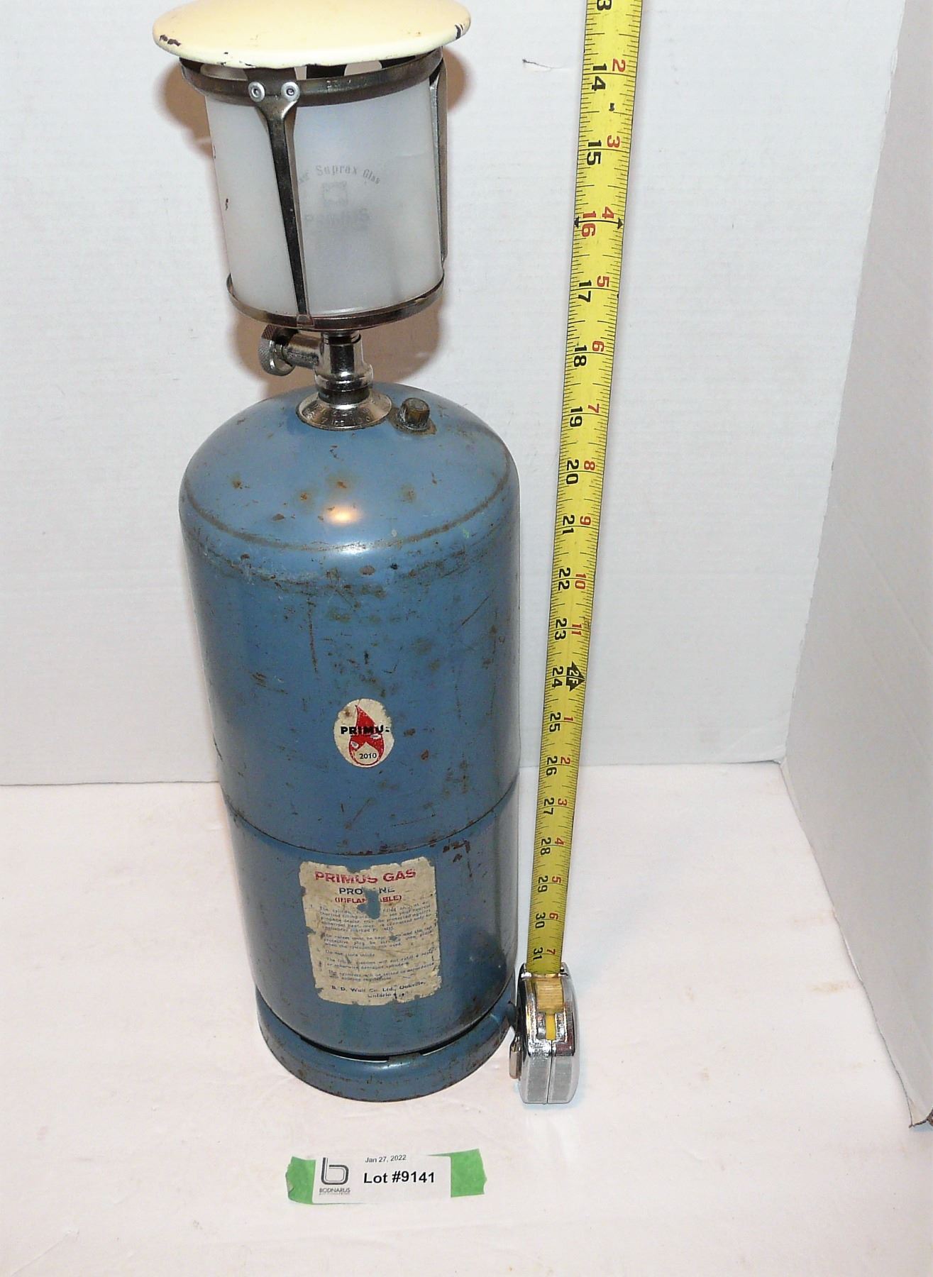 Vintage Primus Lantern Globe & Tank-Untested; parts or display only; crack in globe