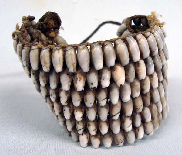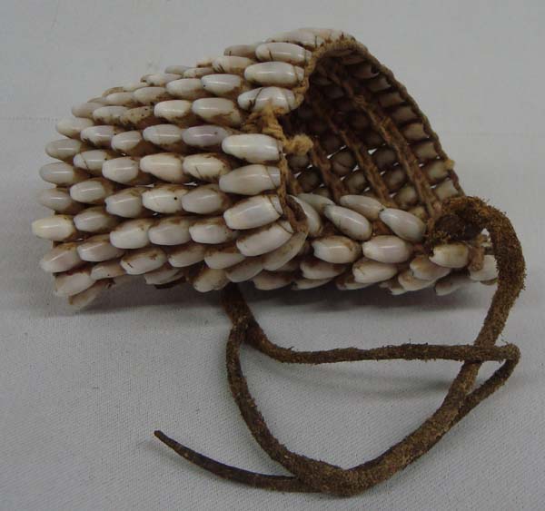Vintage Native American Pueblo Shell On Leather Arm Bracelet. Measures approx. 6''L x 2''W, not including leather ties. Some missing shells. Buyers Pay Actual Shipping and Handling Charges(see terms and conditions for more information).