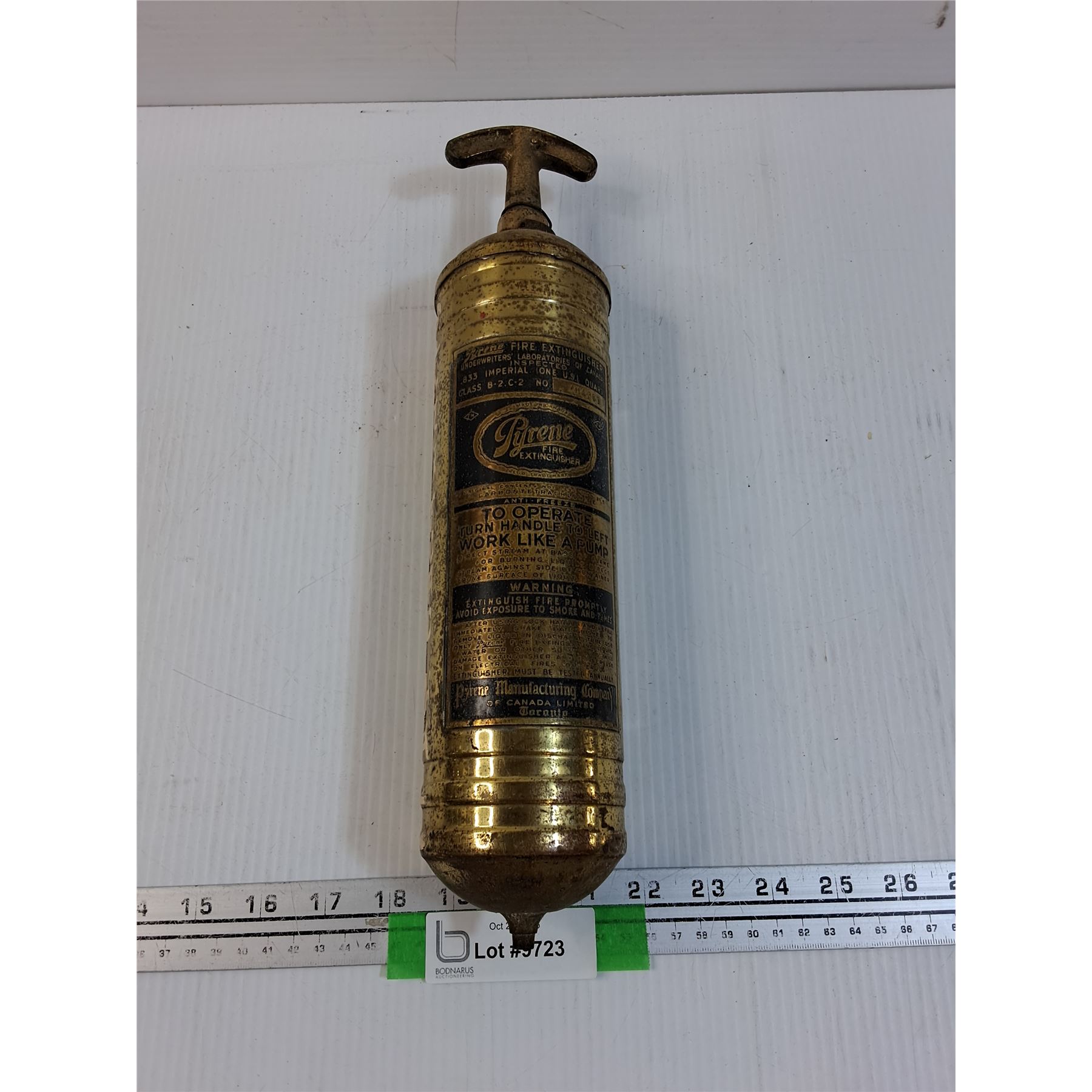 Vintage Pyrene Fire Extinguisher - As Is - 14" Long - Has Contents, CANNOT SHIP