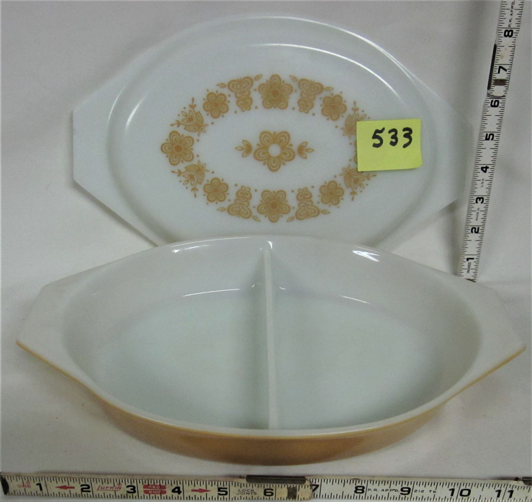 Vintage Pyrex 1 quart divided serving bowl with lid & handles