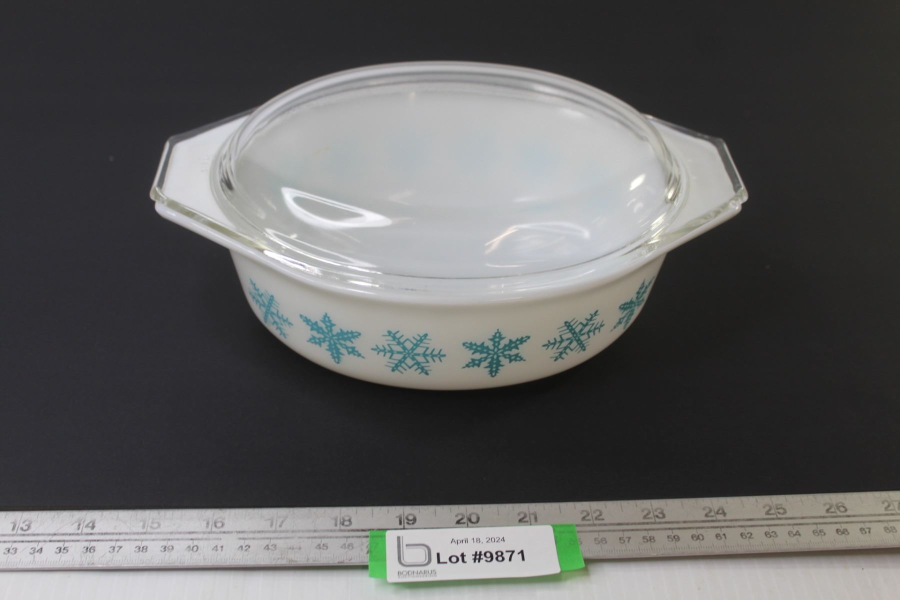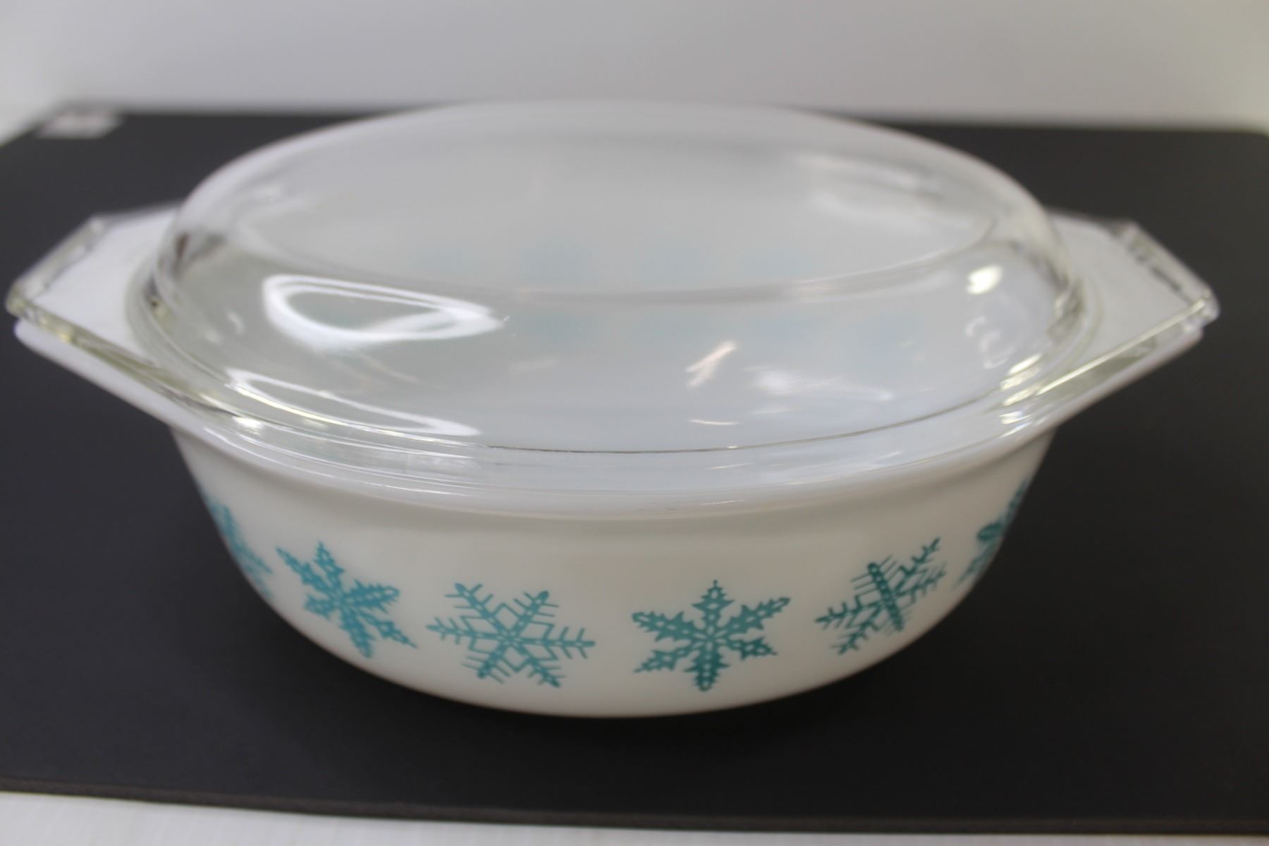 Vintage Pyrex Casserole Dish With Lid - Snowflake Pattern