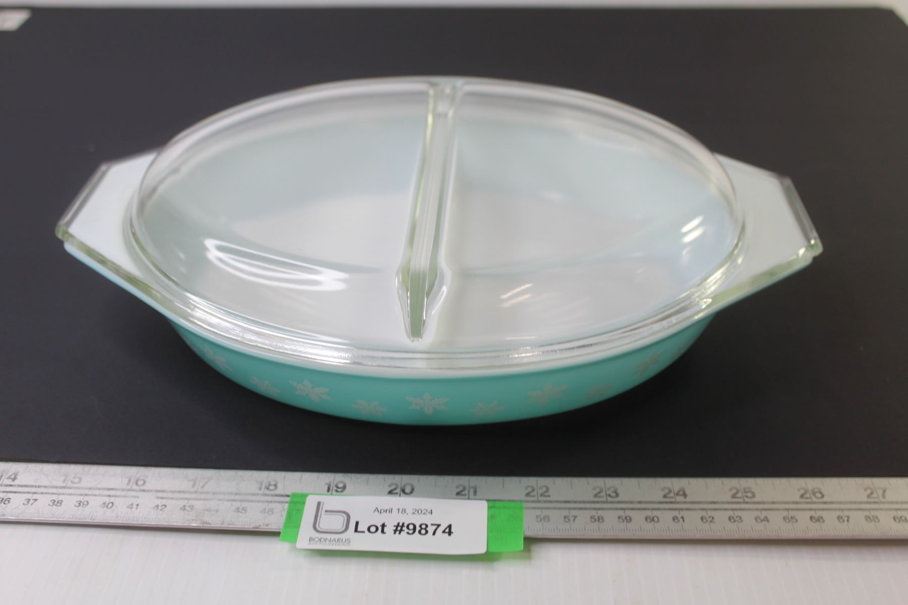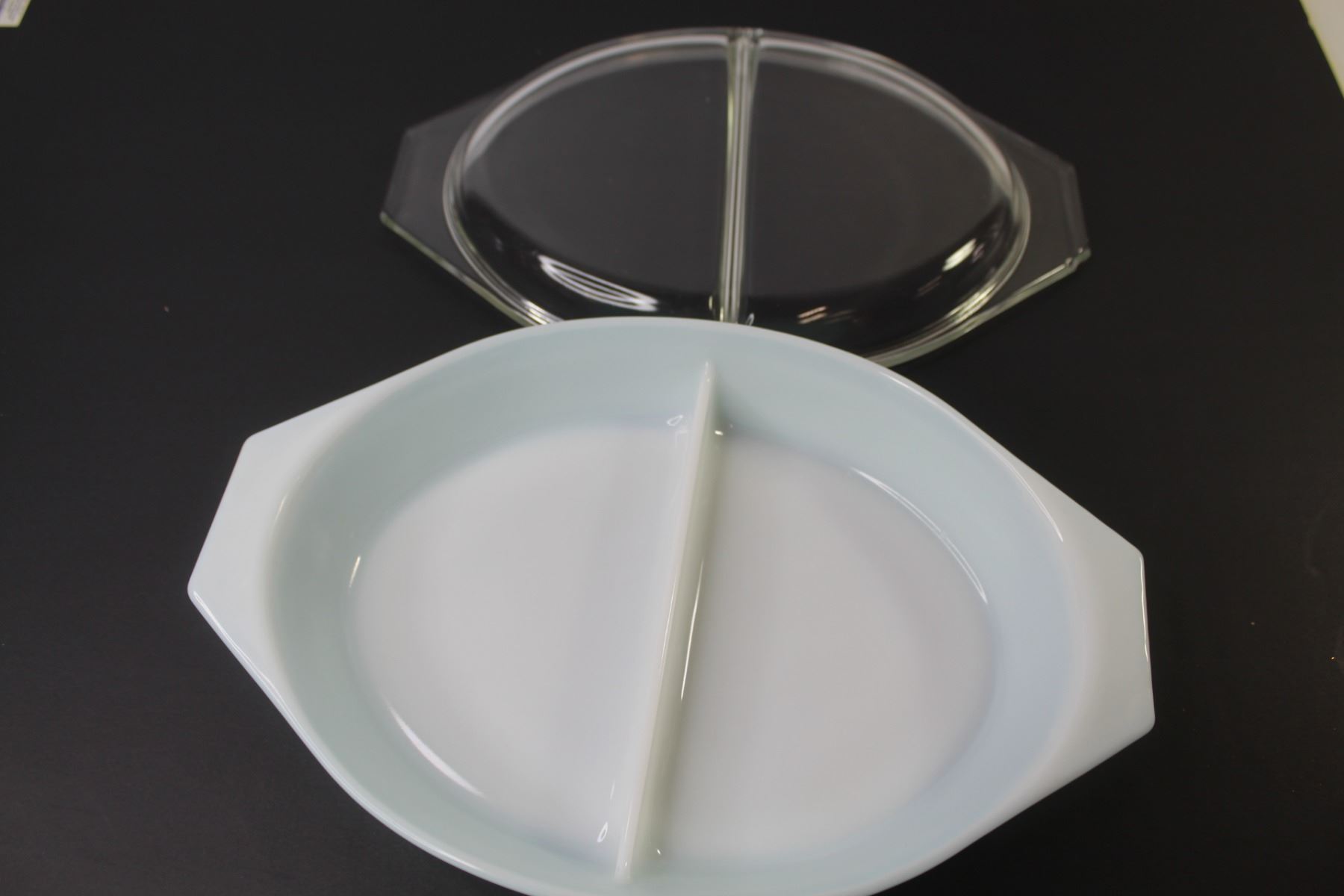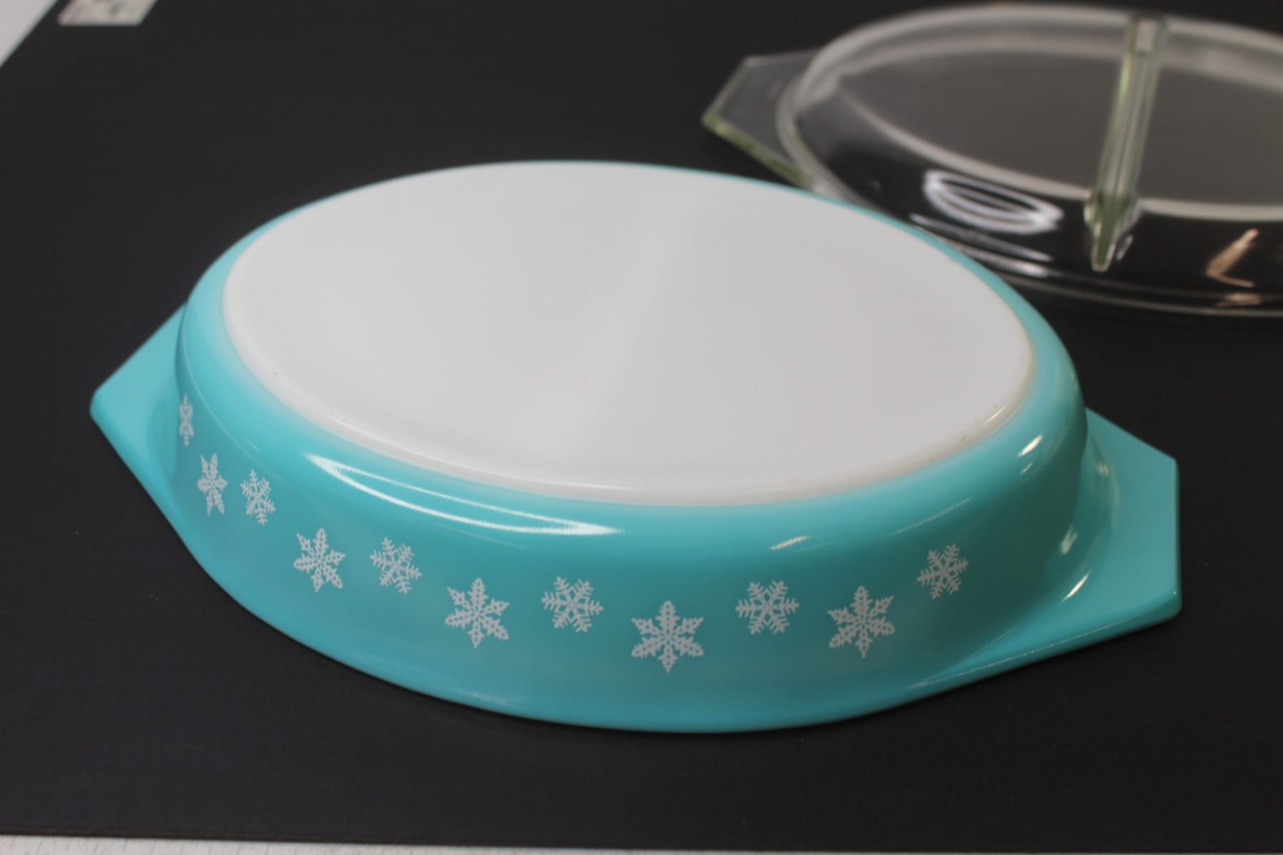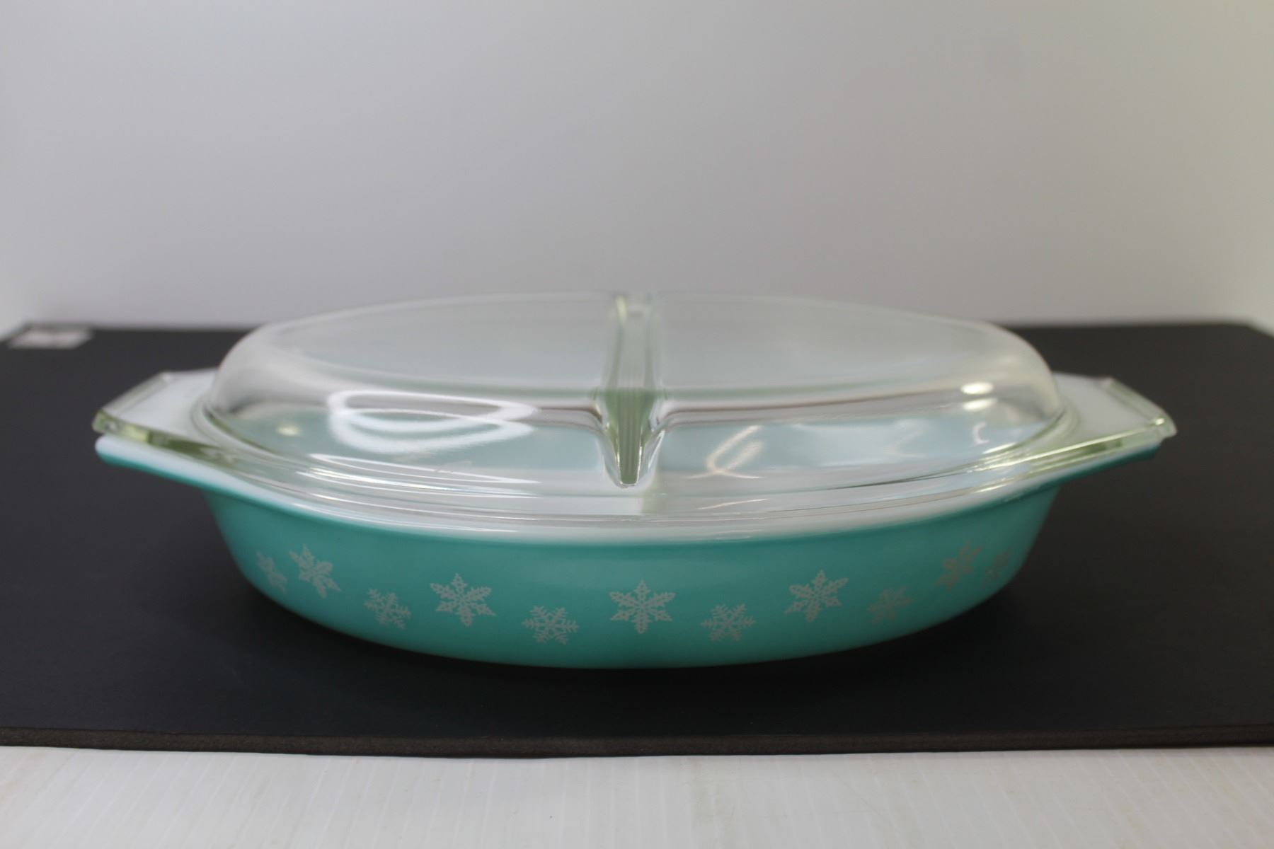 Vintage Pyrex Divided Dish (1.5 quart) - Chip on Lid - Snow Flake Pattern