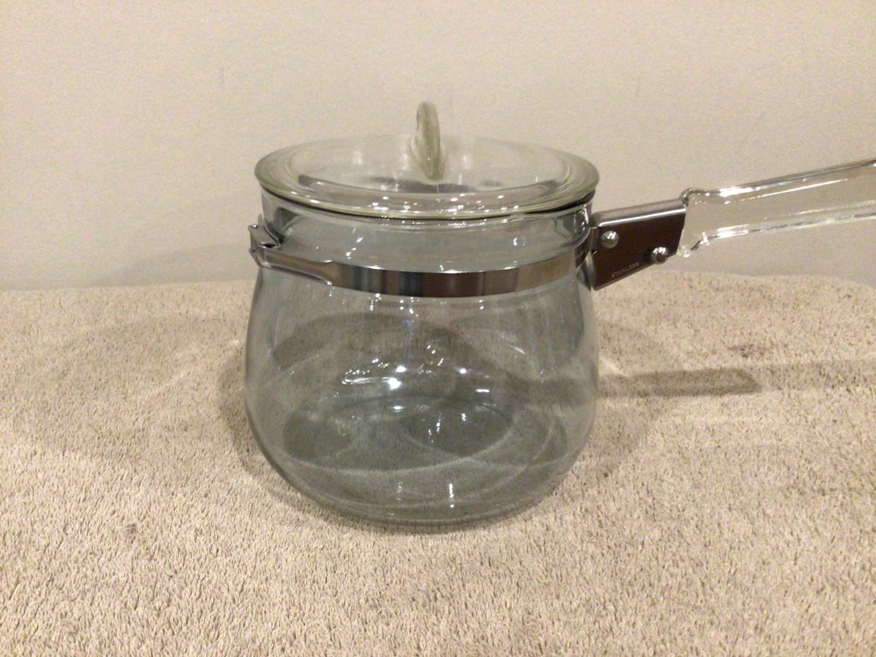 Vintage Pyrex Flameware blue hue double boiler bottom only #6762 with #7792-C lid. No chips or cracks.