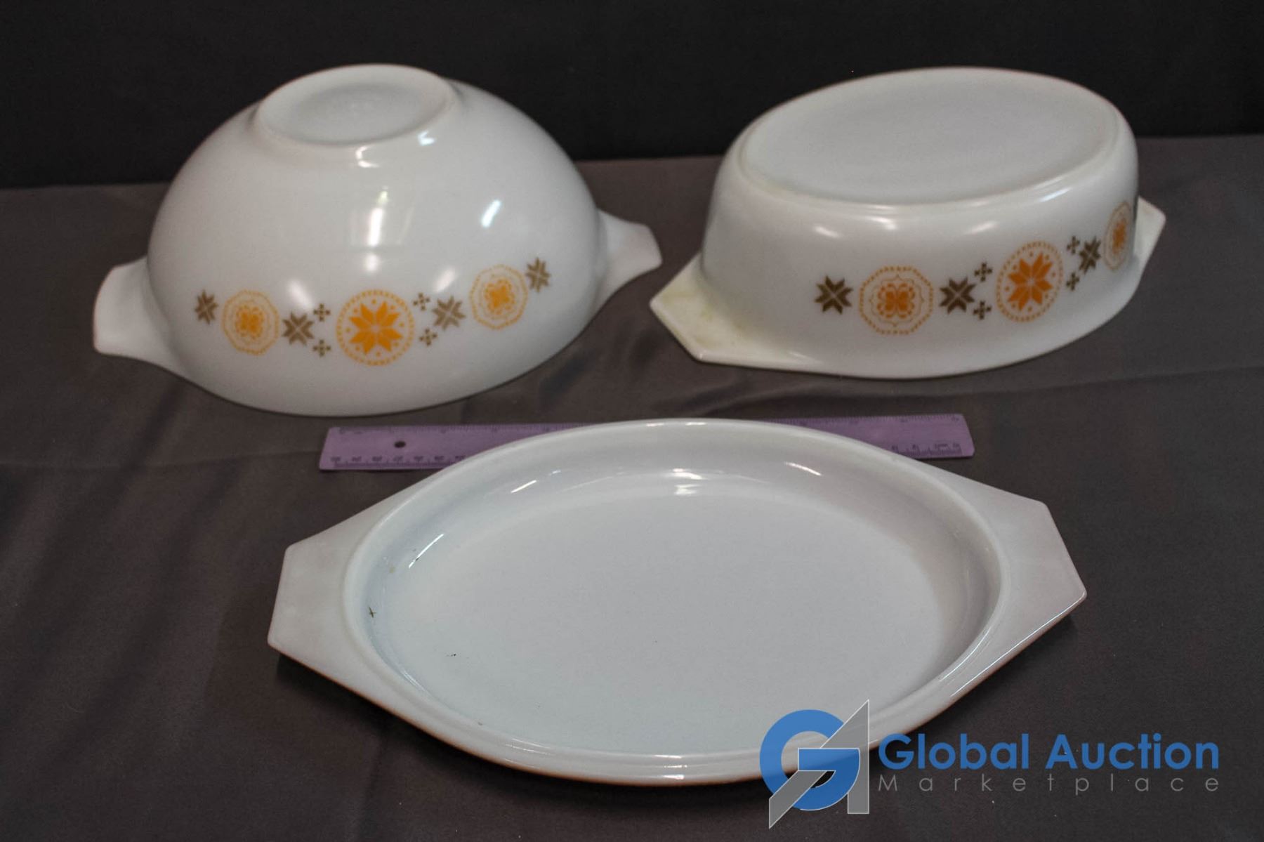 Vintage Pyrex "Town & Country Pattern Dual Serve Casserole Dish w/ Large Serving Bowl (1963-1967)
