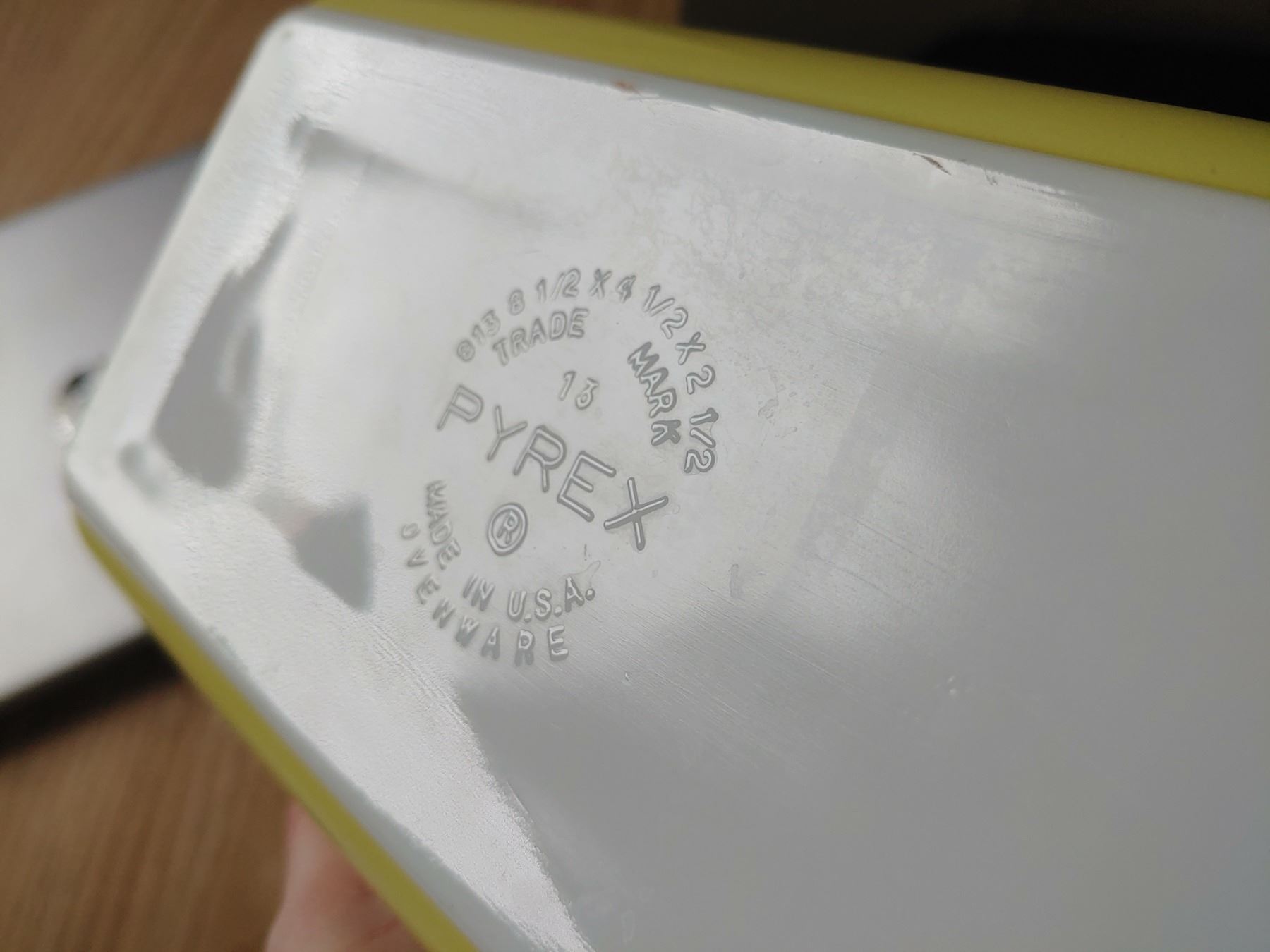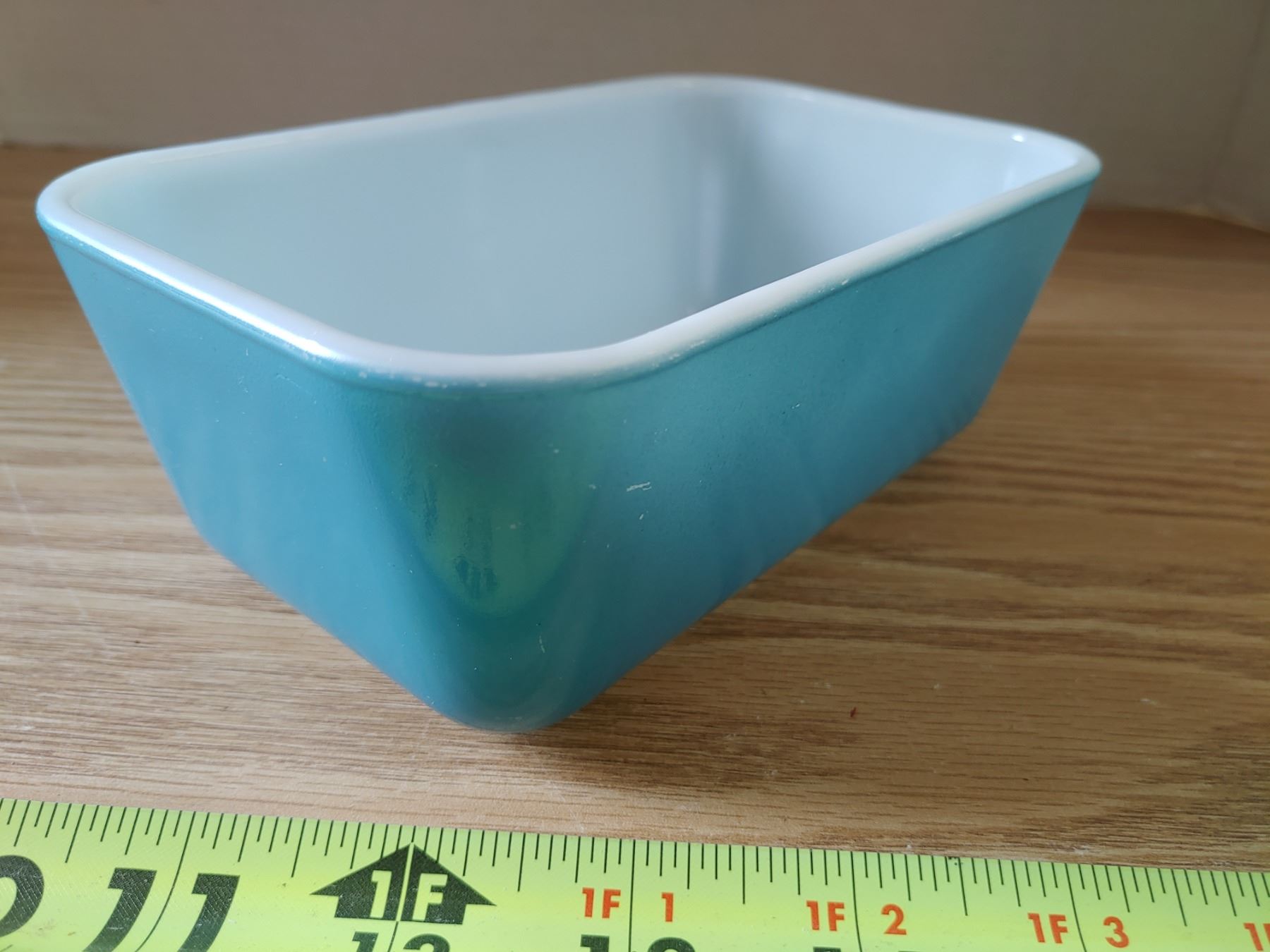 Vintage Pyrex Turquois + Yellow Refrigiration Dish no Lids
