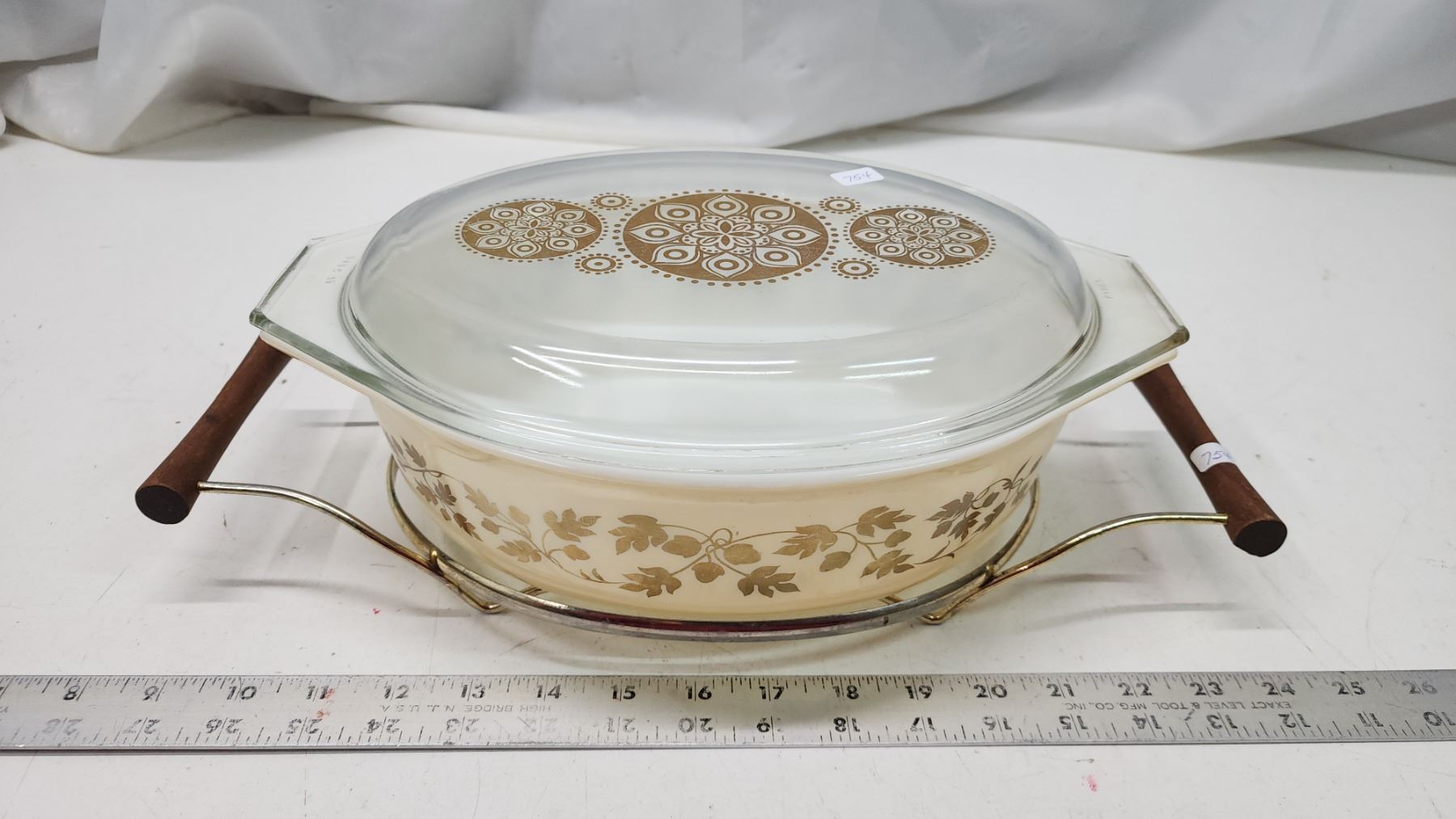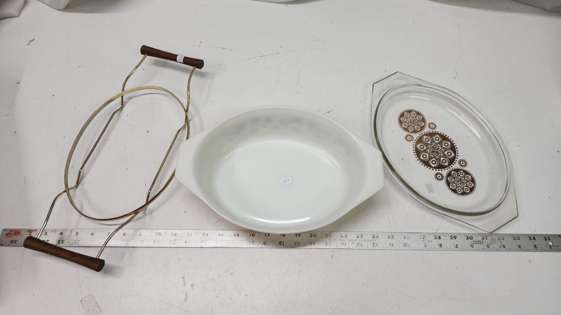 Vintage Pyrex casserole dish, w/ lid & serving handles