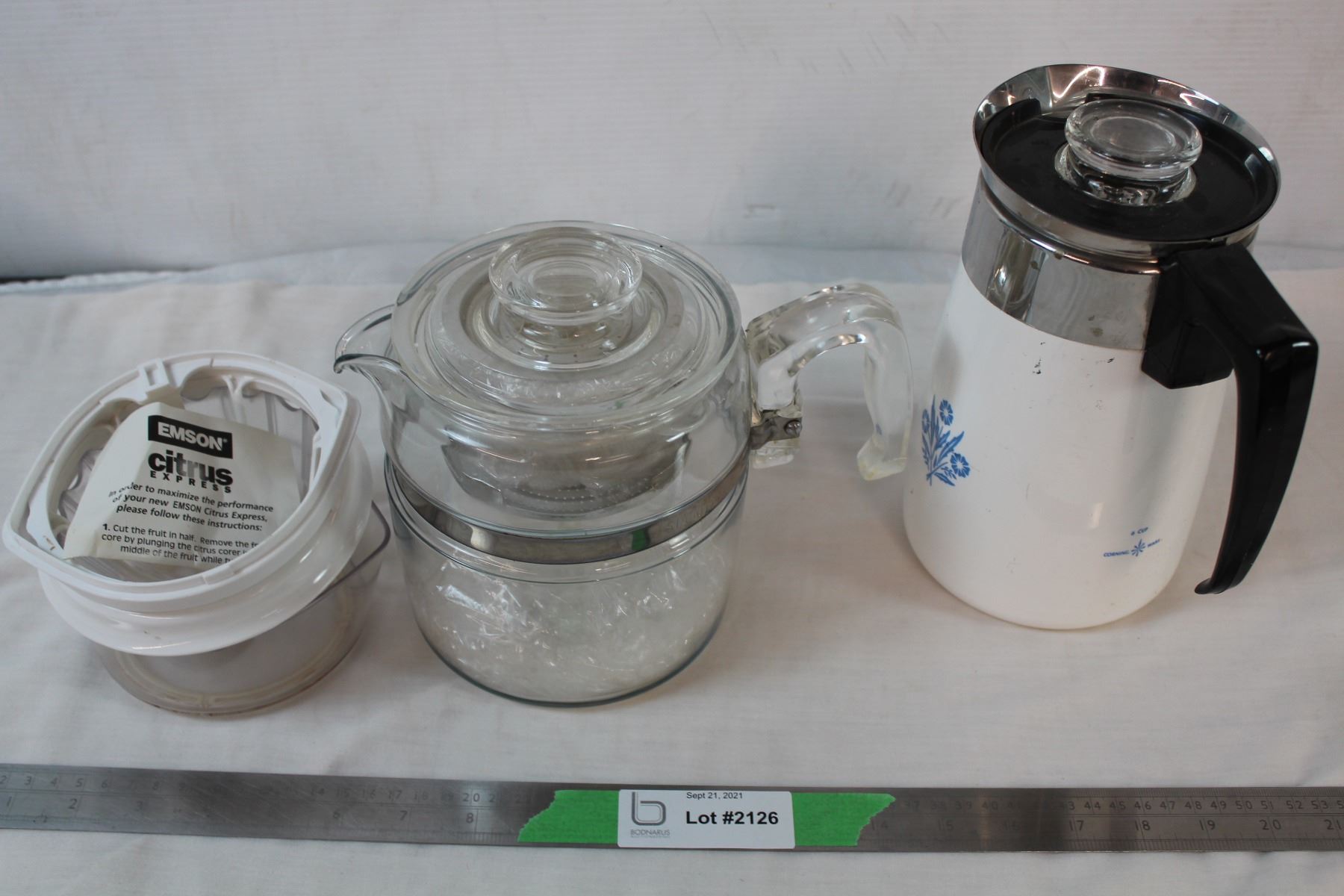 Vintage Pyrex coffee pot + Corning Ware Coffee Pot and juicer