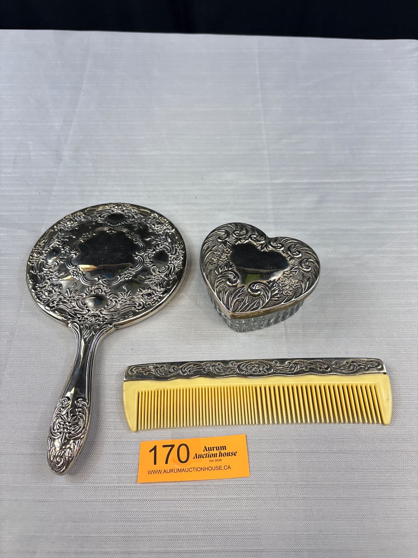Vintage Quality Vanity Hand Mirror, Comb and Powder Box