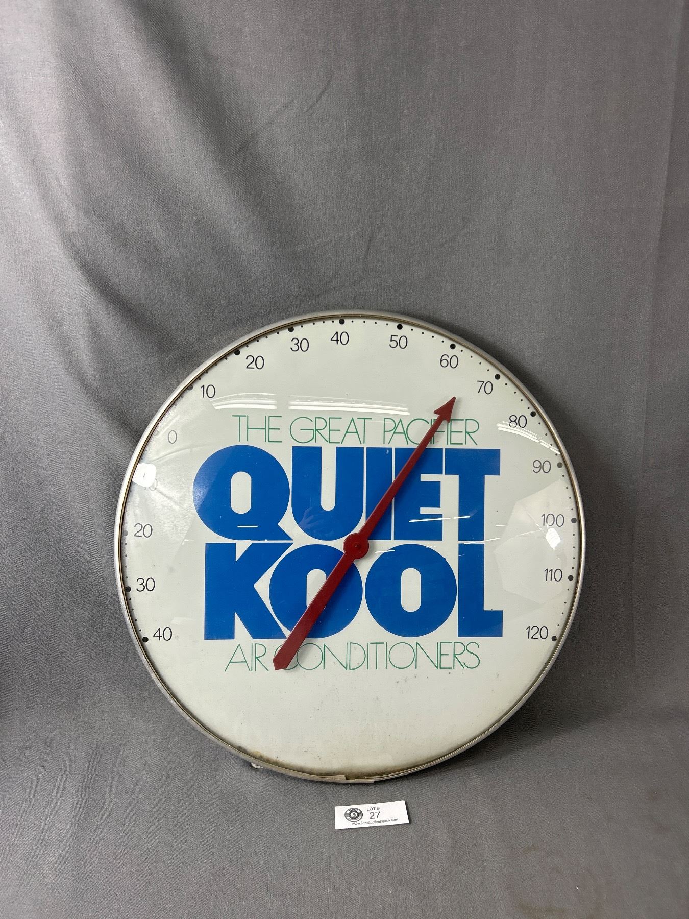 Vintage Quiet Kool Round Metal Thermometer. Approx. 18 1/2" Diam