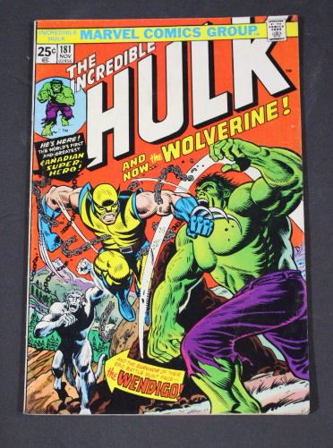Vintage RARE HULK Comic Book #181 "The INCREDIBLE HULK & Now the Wolverine" 0.25 Cents (Very Good Condition) Preserved in a plastic liner for many years. See images for details.Missing Marval Value Stamp " Not Coupon"