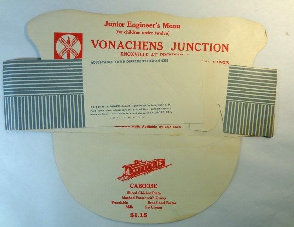 Vintage Railroad Memorabilia - Junior Engineer's Menu on a paper hat, and more!