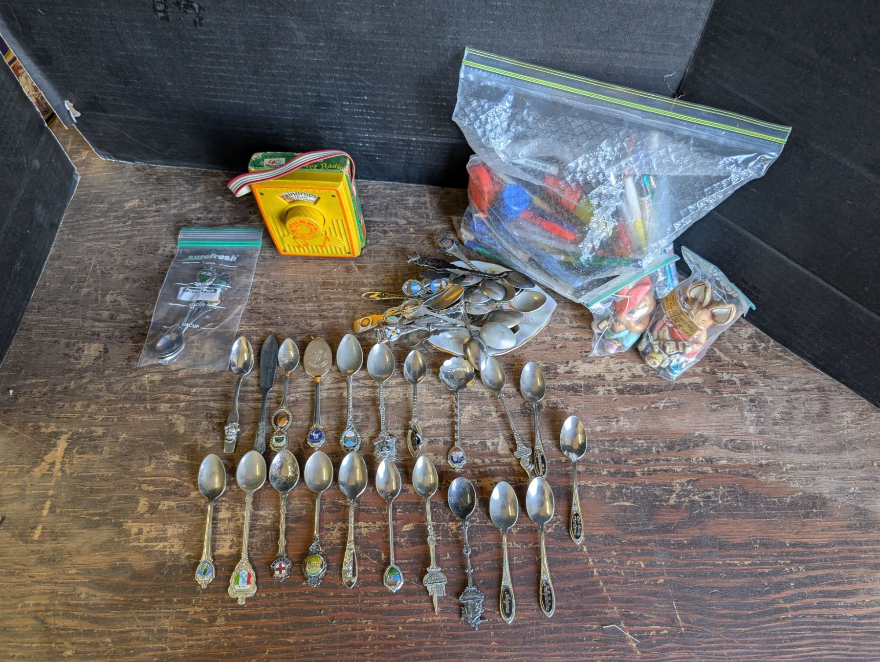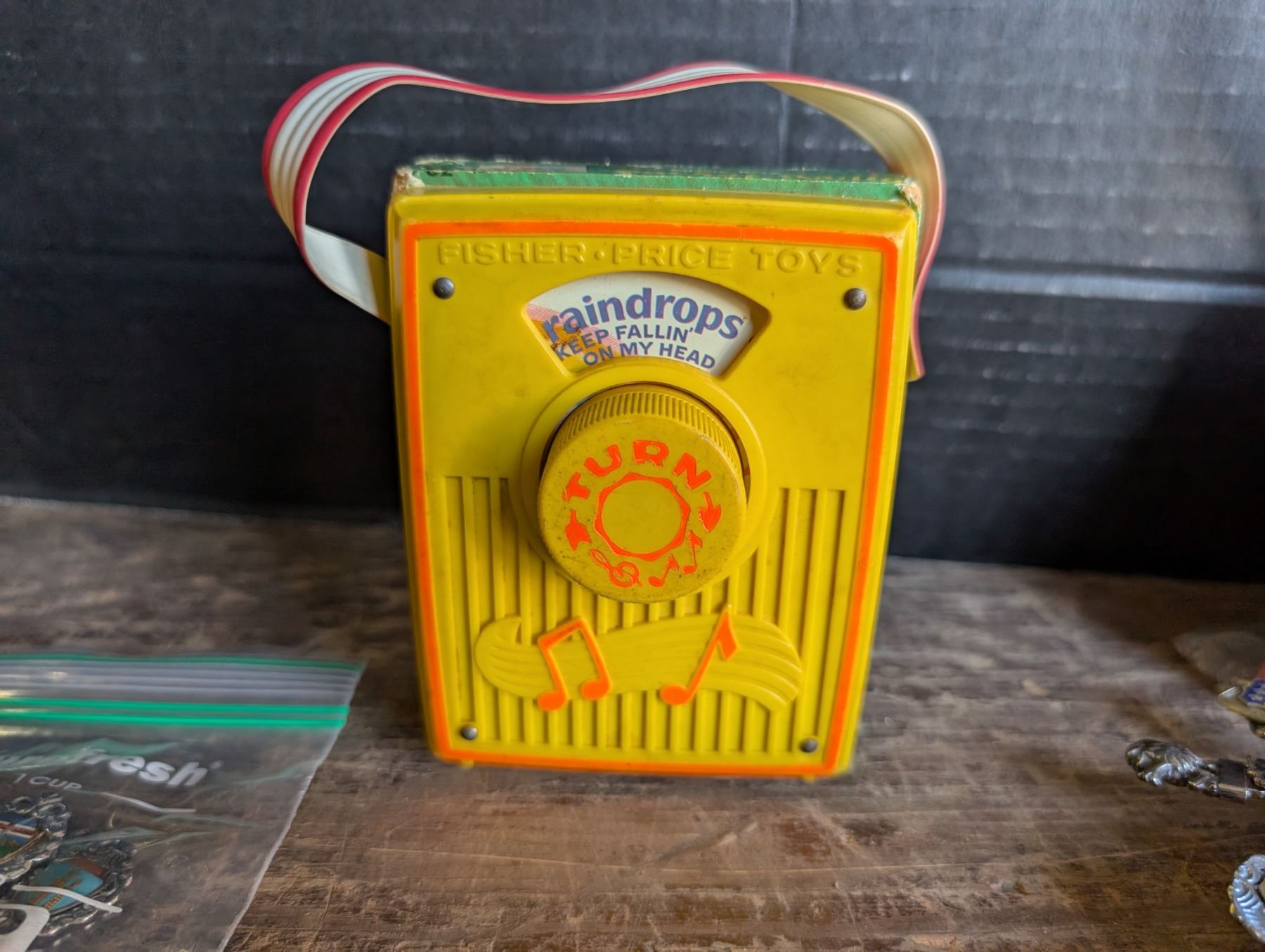 Vintage "Raindrops Keep Fallin' on my head portable Music box player" w/ misc Items