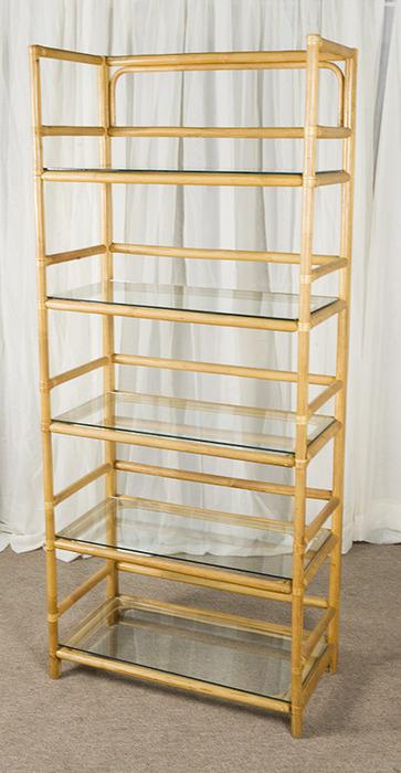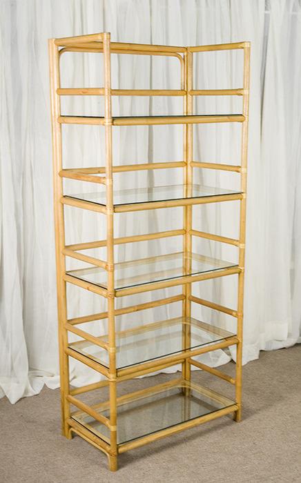 Vintage Rattan 5 Tier Glass Top Book Shelf Wall Unit